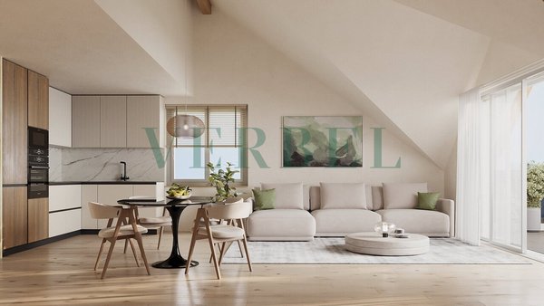 Die Penthäuser bestechen durch ihr Volumen und ihr einzigartiges Potenzial. Das ausbaufähige Dachgeschoss bietet zusätzlichen Raum, den Sie nach Ihren Wünschen gestalten können: ein inspirierendes Büro, einen Wellnessbereich oder einen Hobbyraum... Stellen Sie sich vor, gestalten Sie, leben Sie.