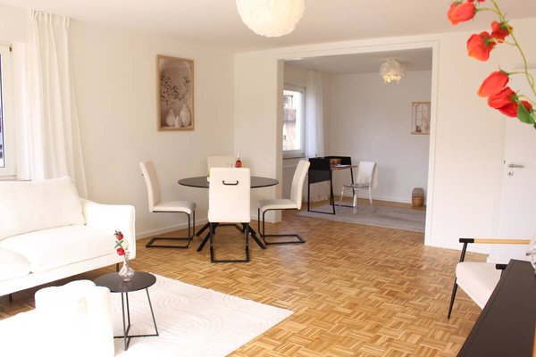Die Wohnung verfügt über insgesamt 4 Zimmer, darunter 3 Schlafzimmer, und eignet sich damit hervorragend für Paare mit Platzbedarf, Familien oder Menschen, die Wohnen mit Homeoffice wünschen. Das Wohnzimmer überzeugt zusätzlich mit hochwertigem Echtholzparkett und schafft eine warme, einladende Wohnatmosphäre. Das Badezimmer wurde im Zuge der Sanierung vollständig erneuert und überzeugt durch modernes Design. Es ist mit einer Badewanne sowie einer ebenerdigen Dusche ausgestattet. Ergänzend dazu steht ein ebenfalls komplett neu gestaltetes Gäste-WC zur Verfügung.