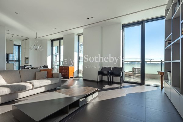 Die Immobilie befindet sich in einem Gebäude zeitgenössischer Architektur, das durch hohe Standards in puncto Komfort, Sicherheit und residentielle Services besticht. Die Räume sind grosszügig und lichtdurchflutet und bieten zugleich raffinierte wie funktionale Flächen. Der Wohnbereich umfasst ein weitläufiges, helles Living, das sich zum Terrassenbereich hin öffnet und eine stimmige Kontinuität zwischen Innen- und Aussenräumen schafft. Direkt angrenzend befindet sich die Küche mit Kochinsel, die durch grosse, bodentiefe Glasflächen beeindruckende Ausblicke ermöglicht.
