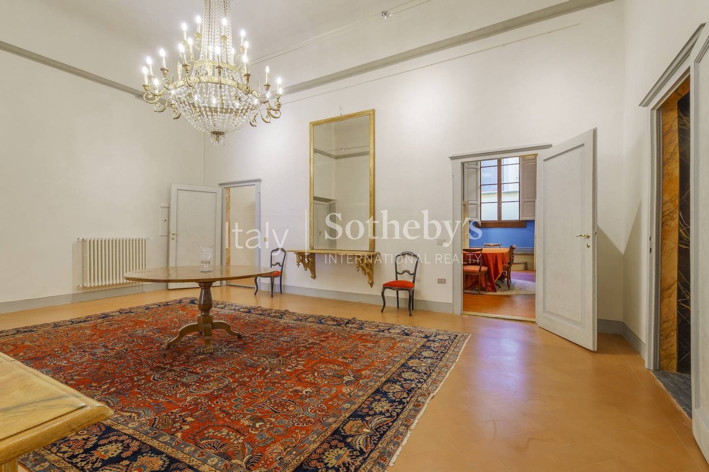 In the authentic heart of Florence's Oltrarno district, within a prestigious historic palazzo and on the piano nobile (the main noble floor), lies this charming representative apartment that perfectly preserves the timeless character of the great Tuscan residential tradition. Between 1743 and 1785, the palace was the residence of Horace Mann, the distinguished British diplomatic representative to the Grand Dukes of Tuscany and a central figure in the relations between the British and Florentine courts.