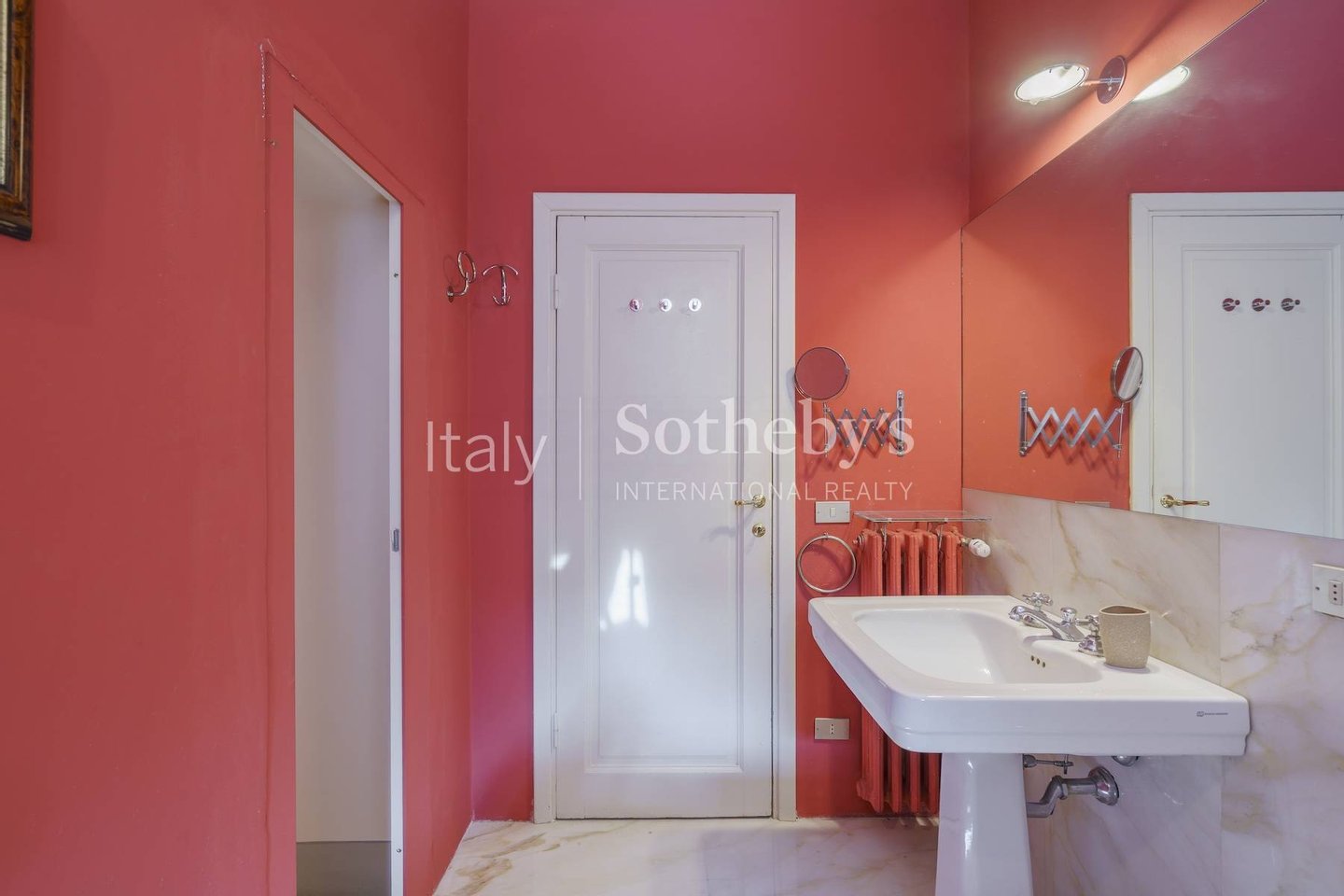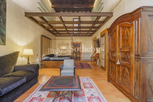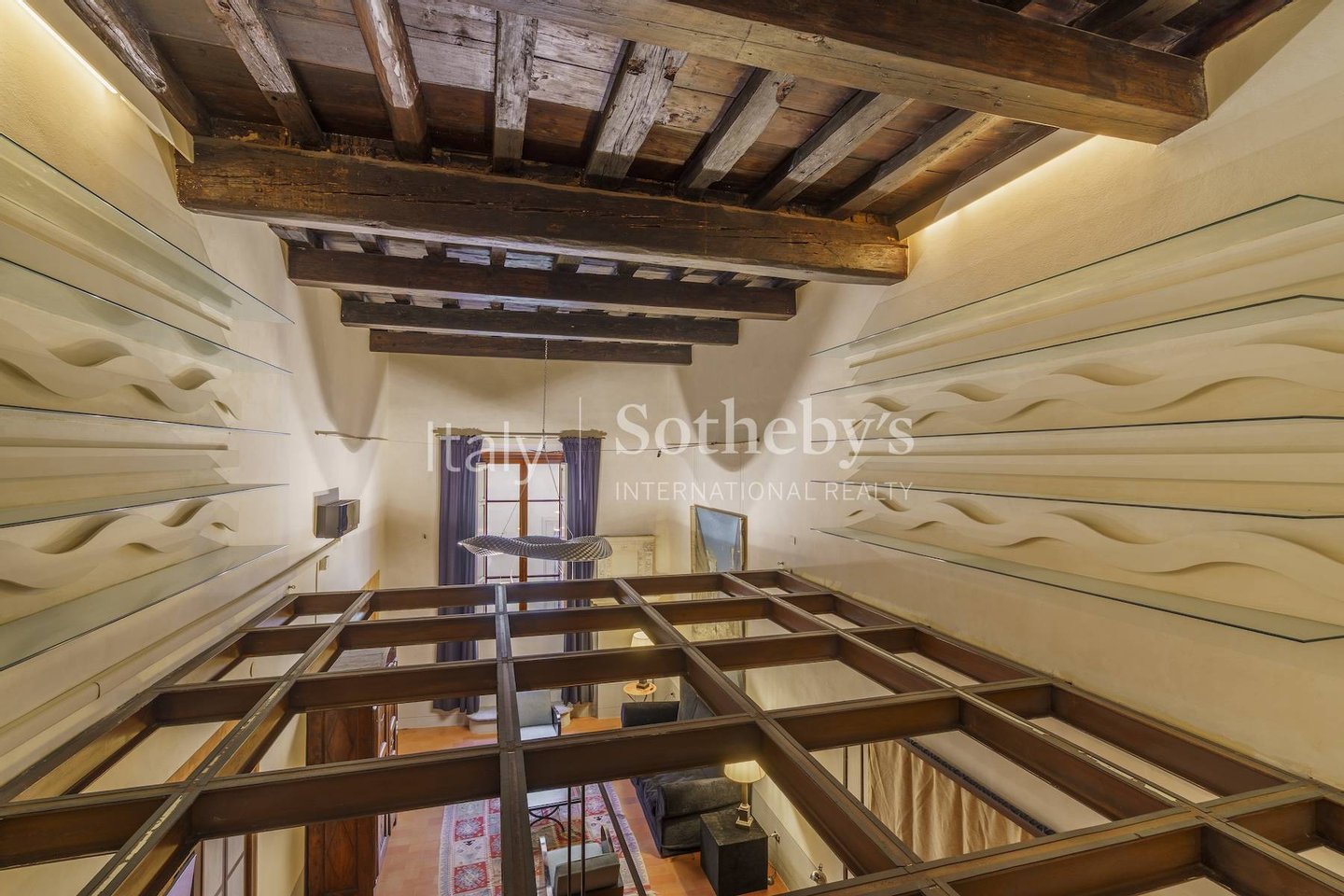 In the authentic heart of Florence's Oltrarno district, within a prestigious historic palazzo and on the piano nobile (the main noble floor), lies this charming representative apartment that perfectly preserves the timeless character of the great