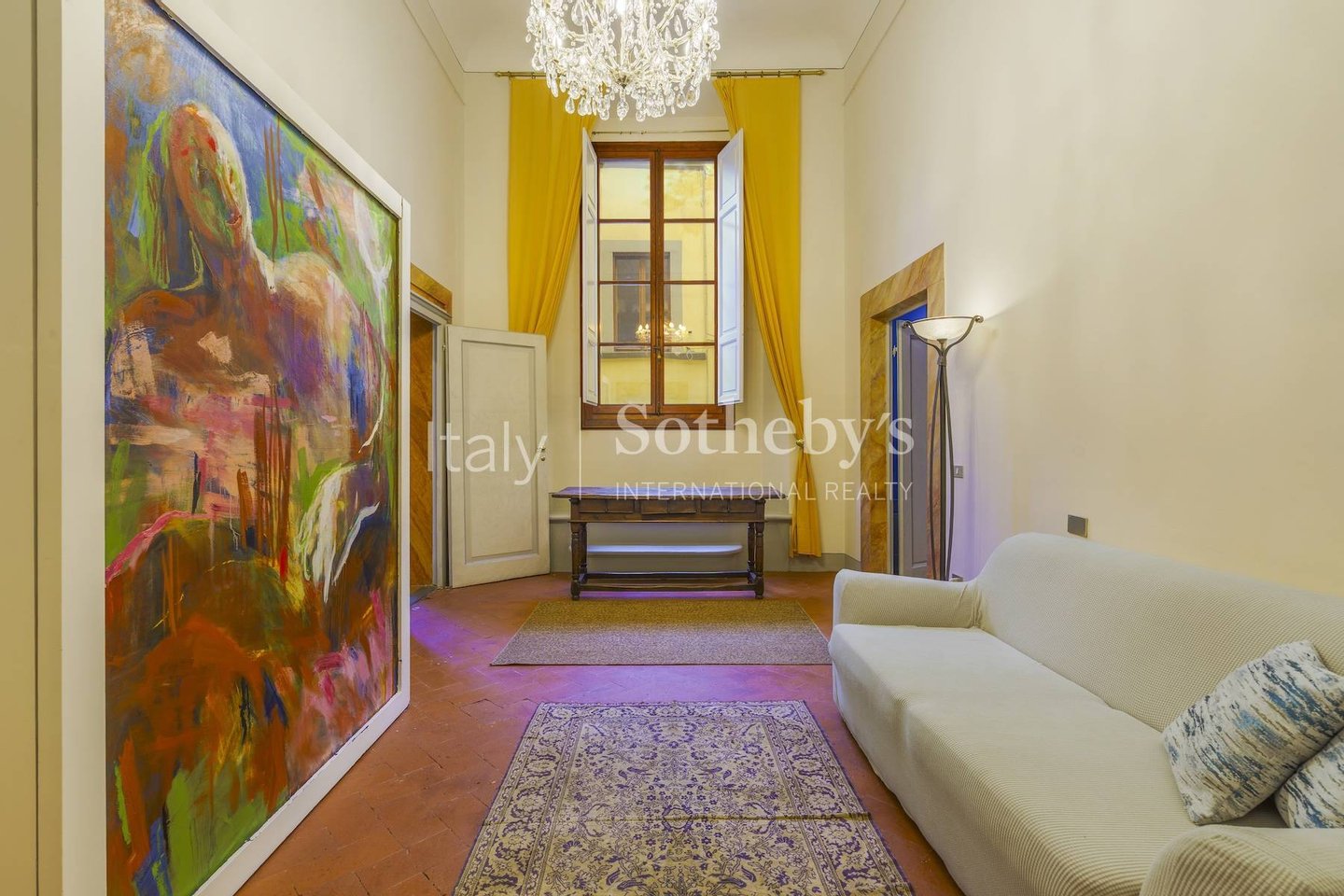 In the authentic heart of Florence's Oltrarno district, within a prestigious historic palazzo and on the piano nobile (the main noble floor), lies this charming representative apartment that perfectly preserves the timeless character of the great Tuscan residential tradition. Between 1743 and 1785, the palace was the residence of Horace Mann, the distinguished British diplomatic representative to the Grand Dukes of Tuscany and a central figure in the relations between the British and Florentine courts.