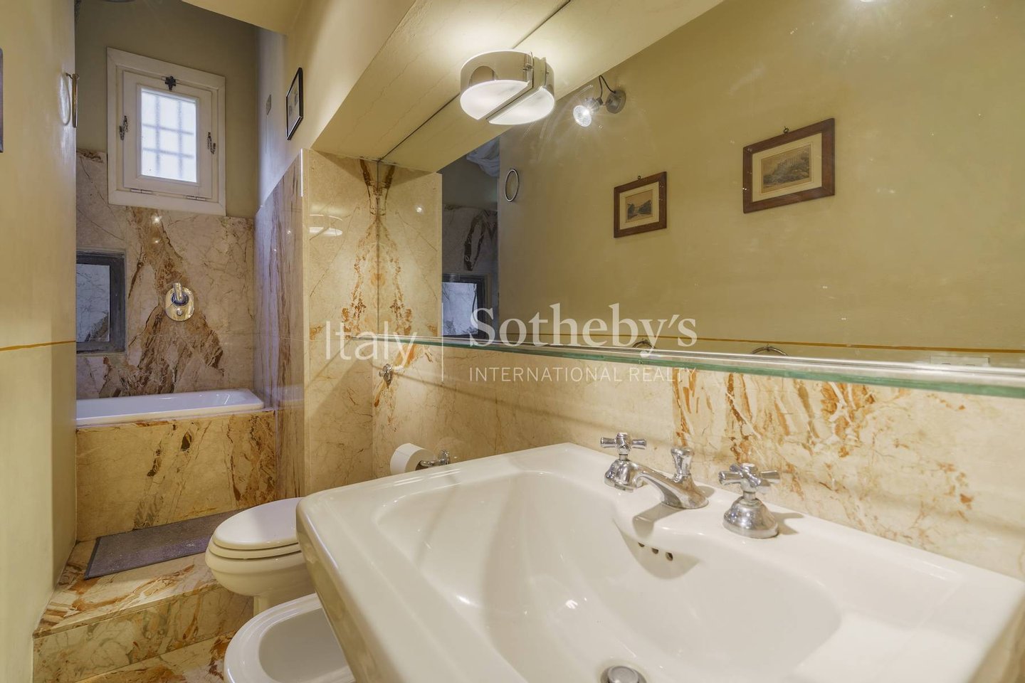 The sleeping area offers three refined double bedrooms, two of which include en-suite bathrooms. The master bedroom, particularly bright, opens directly onto a pleasant private terrace-an intimate outdoor space ideal for relaxing moments in the quiet of the historic center.