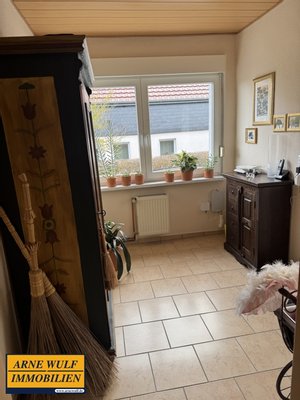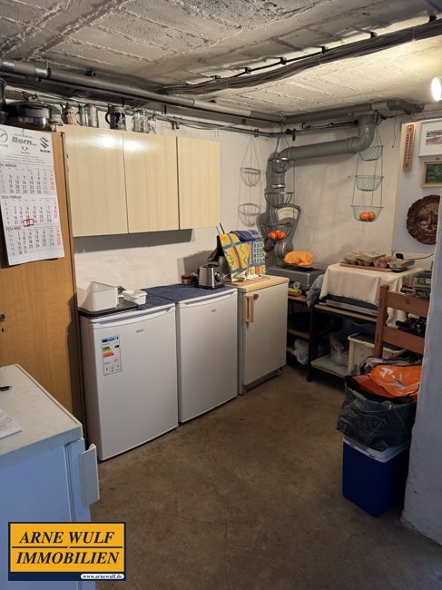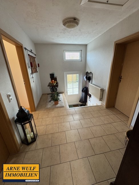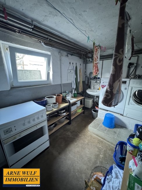 Der überdachte Haupteingang zum Wohnhaus befindet sich auf der Hofseite. Vom Haupthaus gelangt man in den Vollkeller. Hier befindet sich die Ölzentralheizung mit den dazugehörenden Tanks. Diese versorgt die Immobilie mit Wärme und Warmwasser. Darüber hinaus können weitere Kellerräume genutzt werden. Der Hauswirtschaftsraum mit Waschmaschine und Trockner befindet sich ebenfalls im Kellerbereich. Die Immobilie befindet sich in einem gepflegten Zustand.