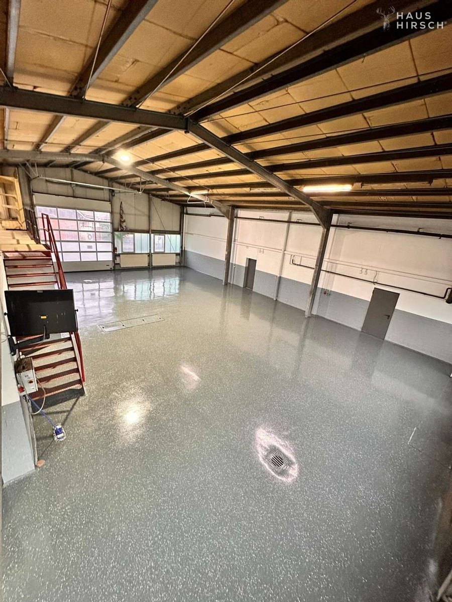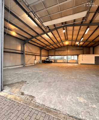 Auf dem Grundstück befinden sich zudem zwei Gewerbehallen mit insgesamt ca. 662,55 m² Fläche. Beide Hallen verfügen über separate Zugänge und getrennte Heizkostenzähler, sodass sie unabhängig voneinander genutzt werden können. Eine Halle ist mit Epoxidharzboden, Bremsenprüfstand, Ölabscheider, Büro, Sozialraum und Sanitäranlagen ausgestattet und verfügt zusätzlich über eine ca. 100 m² große Lagerempore. Die zweite Halle ist über eine Verbindungstür sowie über einen separaten Außeneingang erreichbar.