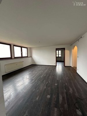 Auch die Wohnung im Obergeschoss ist großzügig gestaltet und verfügt über einen hellen Wohnbereich, eine Wohnküche mit Essbereich, zwei Schlafzimmer, ein Badezimmer mit Dusche und Badewanne sowie Zugang zum Spitzboden. Ein besonderes Highlight ist die große Terrasse mit Blick in den Garten.