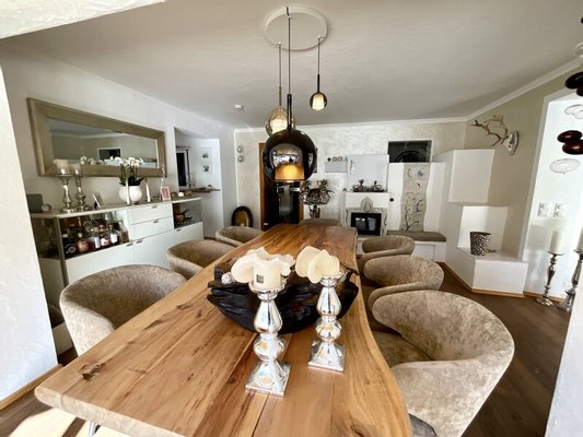 Darüber hinaus öffnen sich im Ober- und Dachgeschoss fünf charmant eingerichtete Ferienwohnungen, jede einzelne mit ganz eigenem Charakter. Liebevolle Details, warme Materialien und der Blick auf die beeindruckende Bergwelt schaffen Rückzugsorte, an denen man ankommt und bleiben möchte. Balkone und Sonnenterrassen schenken Weitblick, Ruhe und dieses ganz besondere Gefühl von Freiheit.