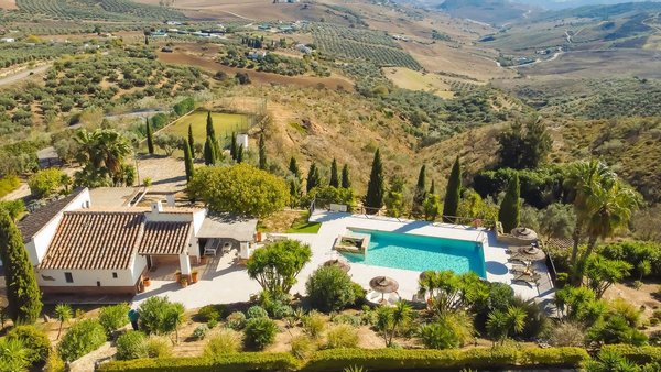 This exceptional Andalusian finca, located in the charming village of Villanueva de la Concepción, offers a rare combination of space, privacy and stunning surroundings. The main residence features 11 beautifully renovated bedrooms, allowing family, friends or guests to comfortably accommodate. The property also has a private helipad, a new heated swimming pool (2025), tennis court and several spacious terraces with panoramic views of the rolling landscape, mountains and even the distant Mediterranean Sea.
