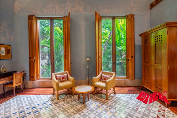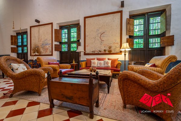 Im Zentrum des Anwesens befindet sich das Haupthaus, ein beeindruckendes koloniales Gebäude mit hohen Decken, eleganten Rundbögen, originalen Pasta-Fliesenböden und großzügigen Terrassen. Die sorgfältig restaurierten Innenräume umfassen repräsentative und informelle Wohnbereiche, eine Bibliothek, mehrere Essbereiche sowie eine vollständig ausgestattete Küche, die ideal für Empfänge und Veranstaltungen geeignet ist.