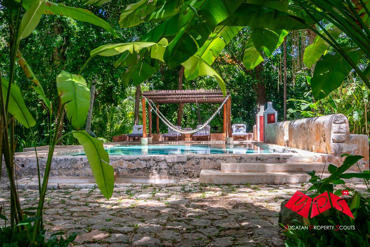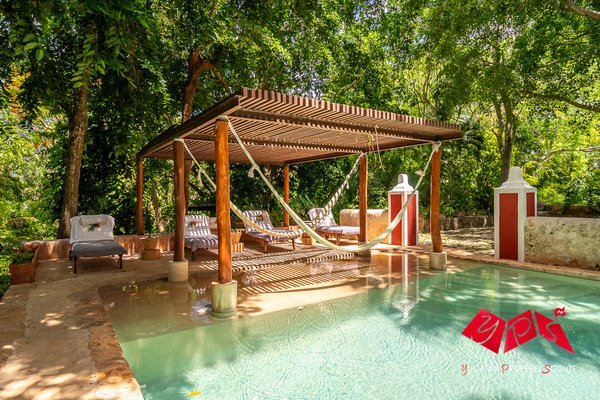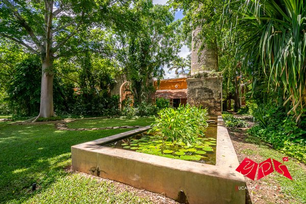 Das Anwesen erstreckt sich über 31 Hektar tropischer Landschaft. Jahrhundertealte Bäume, Gartenwege, Teiche sowie historische Relikte aus der Zeit der Henequen-Produktion schaffen eine außergewöhnlich ruhige und atmosphärische Umgebung – und dass nur eine kurze Fahrt von Mérida entfernt.