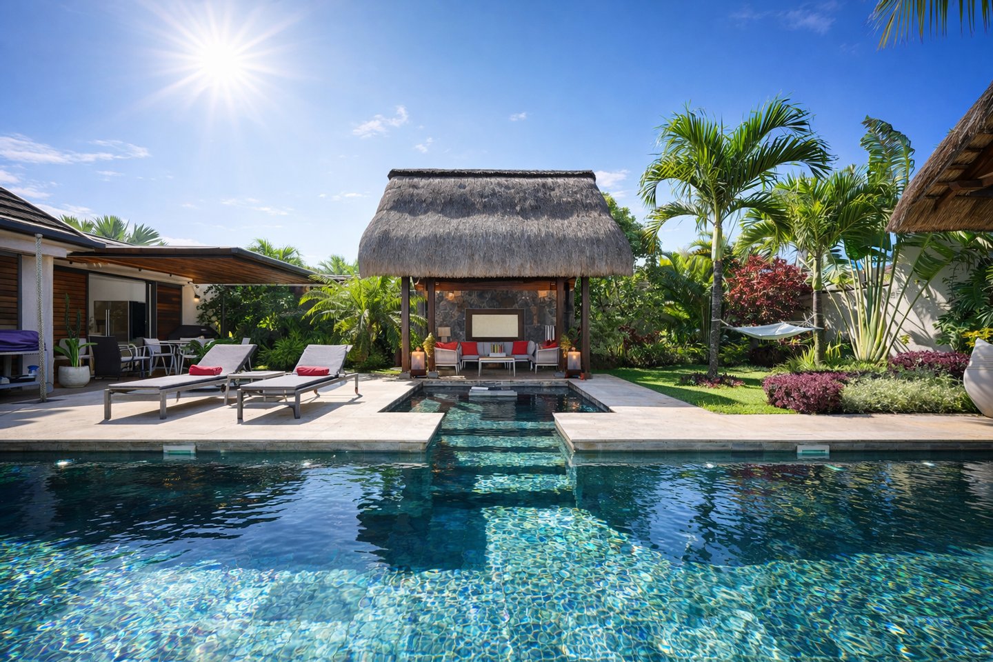Voll möblierte Villa: sofortige Einrichtung ohne Einschränkungen Authentischer mauritischer tropischer Lebensstil