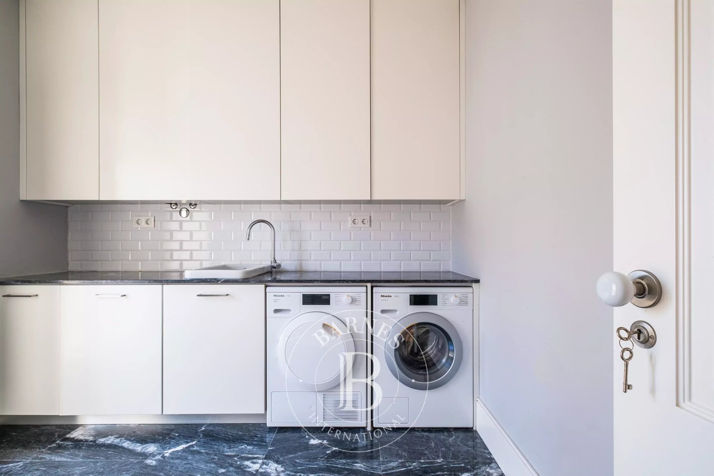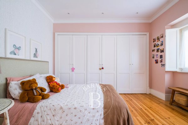 The property offers two suites, two additional bedrooms, four bathrooms and an attic level suitable for a living room or home office, providing versatile spaces adapted to different lifestyles. Kitchen and laundry equipped with Miele appliances.