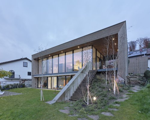 Willkommen im Einfamilienhaus CL16. Diese besondere Immobilie ist weit mehr als ein Wohnhaus – sie ist ein architektonisches Kunstwerk, das bereits Anerkennung in der einschlägigen Fachliteratur gefunden hat. Das Haus besticht durch eine klare, zweigeschossige Formsprache und einen spannenden Materialmix: Während das Erdgeschoss aus massivem Sichtbeton besteht, wurde das Obergeschoss in innovativer Holzständerbauweise errichtet.