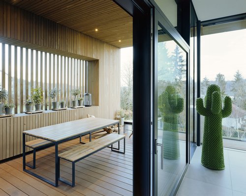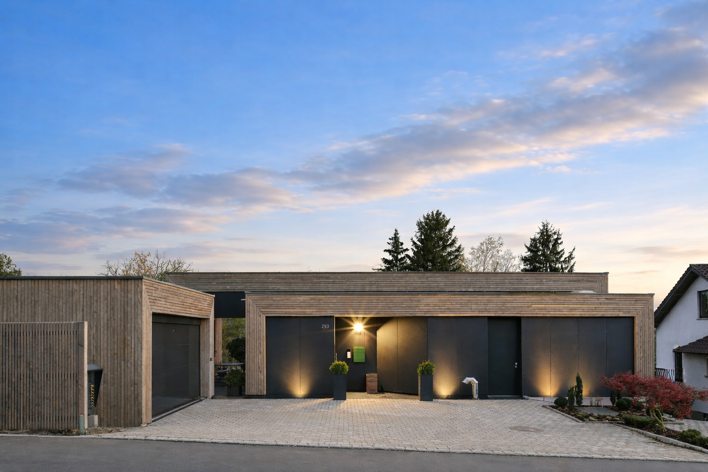 Diese Kombination vereint modernes Design mit ökologischer Weitsicht. Holz als natürlicher Baustoff bietet unübertroffene Vorteile wie ein hervorragendes Raumklima und eine exzellente Wärmedämmung, was sich in spürbar geringen Heizkosten widerspiegelt.