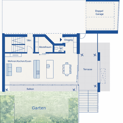 - Parkierung: Eine Doppelgarage sowie 4+ zusätzliche Pkw-Außenstellplätze bieten Platz für höchste Ansprüche.