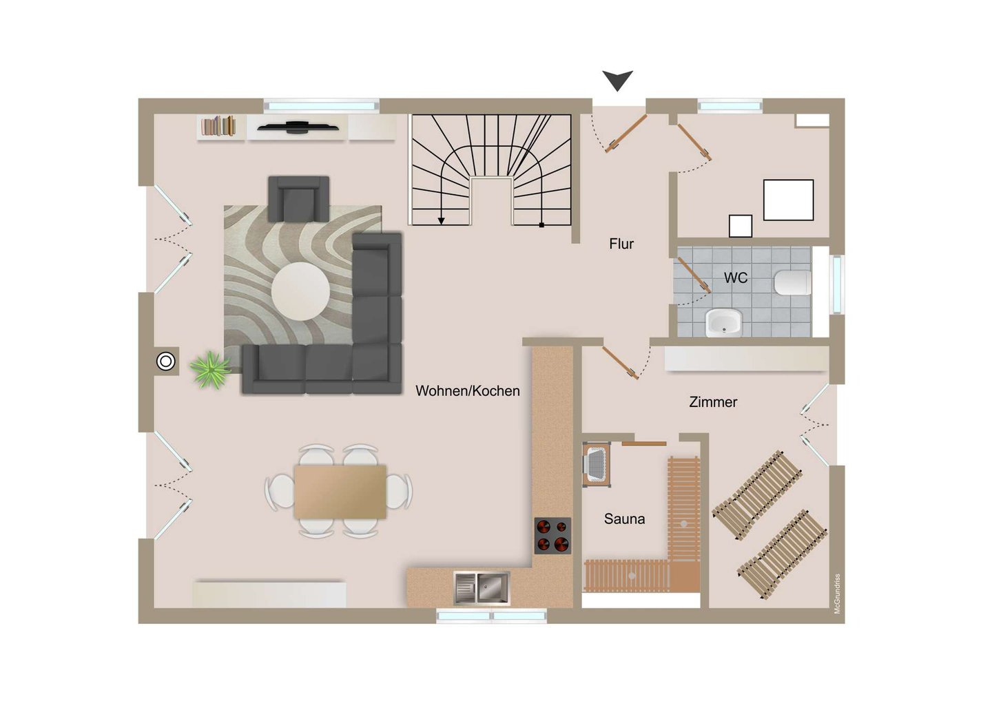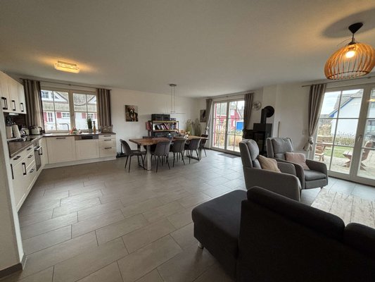 Mit einer Wohnfläche von 125,71 m² bietet das Haus genügend Platz für Familien oder Gruppen. Das Erdgeschoss empfängt Sie mit einem großzügigen, lichtdurchfluteten Wohn- und Essbereich, der zum gemütlichen Beisammensein einlädt. Eine hauseigene großzügige Sauna sorgt für entspannte Wellness-Momente nach einem Spaziergang am Strand, während der Hauswirtschaftsraum und das separate Gäste-WC für praktischen Komfort sorgen.