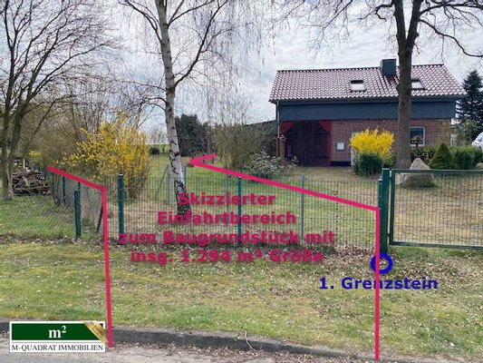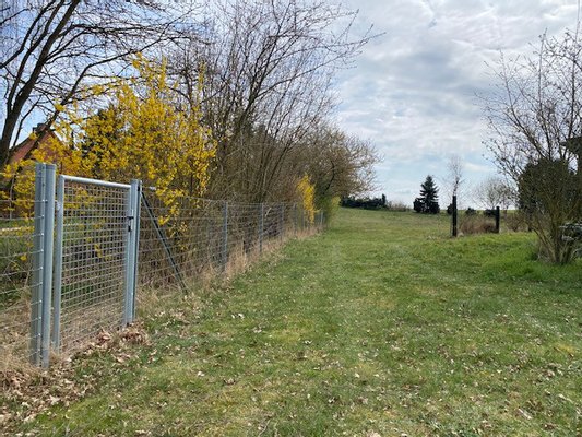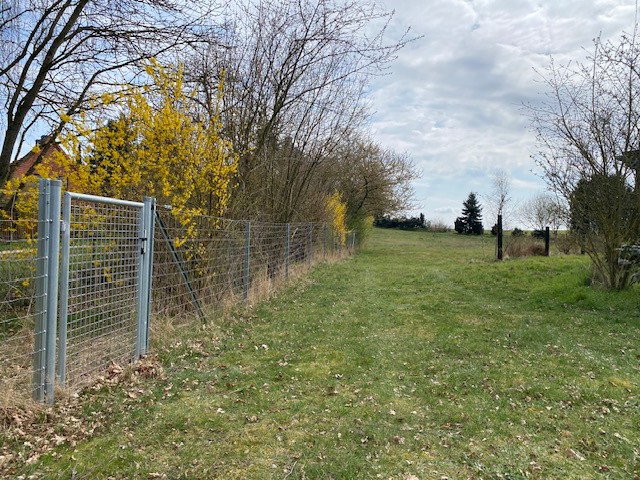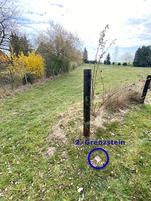 Das Baugrundstück ist ab sofort zum Kauf erhältlich und ermöglicht Ihnen die Verwirklichung eines maßgeschneiderten Zuhauses, das ganz Ihren persönlichen Vorstellungen entspricht. Das Baugrundstück ist bereits an drei Seiten eingefriedet. Von der Straße aus gesehen, befindet sich an der linken Seite eine doppelte Einfriedung. Der innere Wildzaun mit Pforte, ca. 66 m lang, ist rel. leicht zu demontieren und kann an anderer Stelle vom Käufer gesetzt werden, um die Einfriedung zu komplettieren. Von der Straße betrachtet rechts gelegen, besteht für den neuen Eigentümer eine Zaunpflicht mit 123 cm Höhe analog zur Front gem. insgesamt vier Vermessungspunkten/Grenzsteinen von der Front rechts über vier Grenzsteine bis zur hinteren Einfriedung (Holzstab, orange).