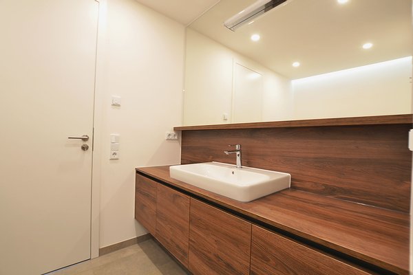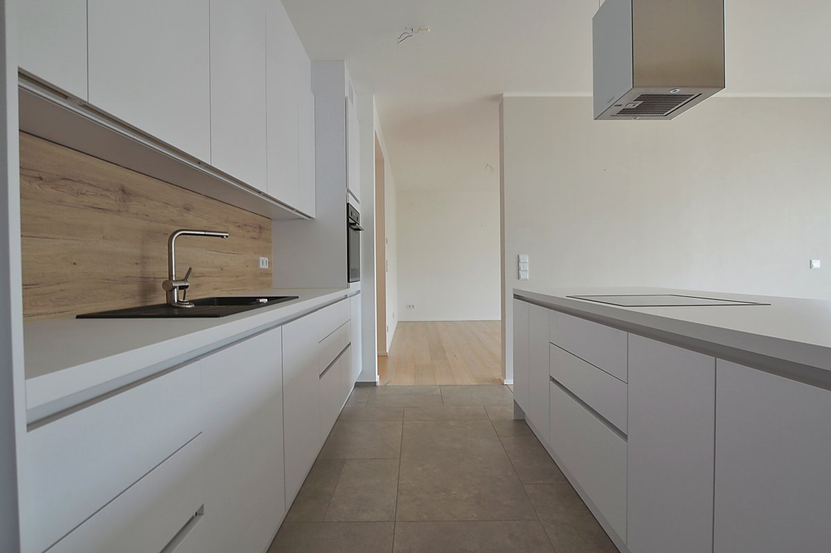 - Hochwertige Feinsteinzeugböden in Bädern sowie im Kochbereich