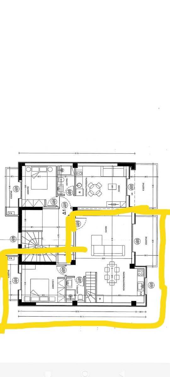 Eusomós: Wird in einem neuen Projekt an der Makrygianni-Straße in Ano Ilioupoli in der Nähe des Knotens gebaut. Eine beeindruckende Maisonettewohnung im 4. und 5. Obergeschoss, 132 m², südliche Ausrichtung mit Blick auf die Stadt. Im ersten Stock: