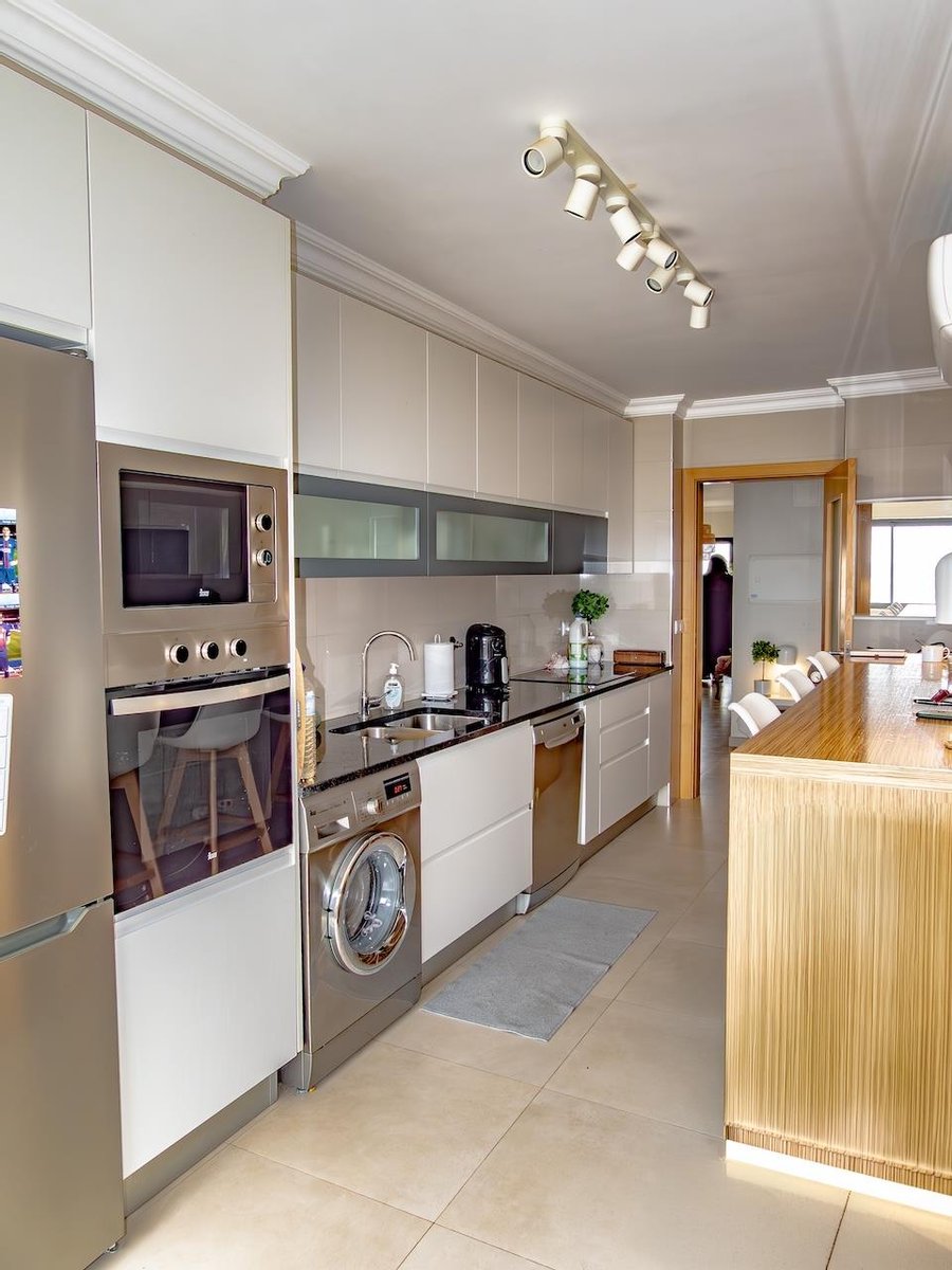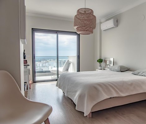 Gelegen an einer der schönsten Straßen Faro's bietet diese 3-Zimmer-Wohnung im 6. Stock außergewöhnliche, völlig freistehende Ausblicke auf die wunderschöne Ria Formosa. Die hochwertig ausgestattete Wohnung verfügt über ein geräumiges, helles