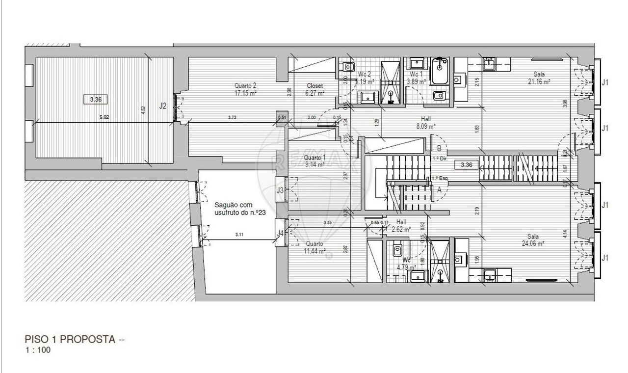 1st floor: T1 and T2 - 157.66m²