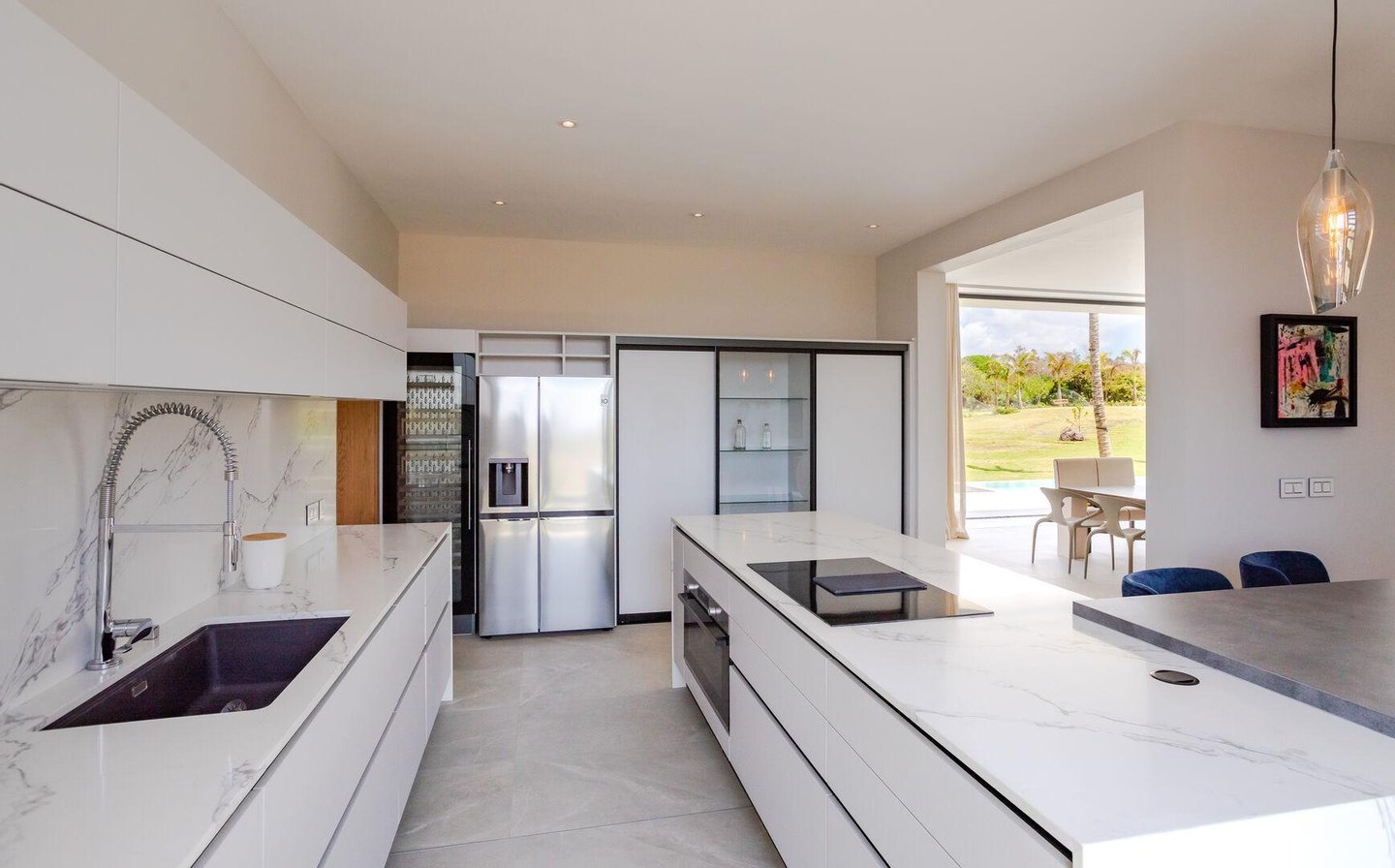 Atemberaubende Villa im Herzen des prestigeträchtigen Anwesens Anahita an der Ostküste mit Blick auf den Golfplatz. Sie werden ein großes Wohnzimmer entdecken, das sich auf die Terrasse und den Pool mit großen Fenstern öffnet, die einen Panoramablick