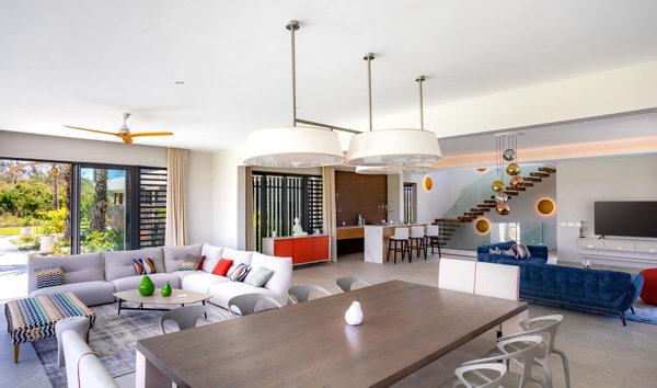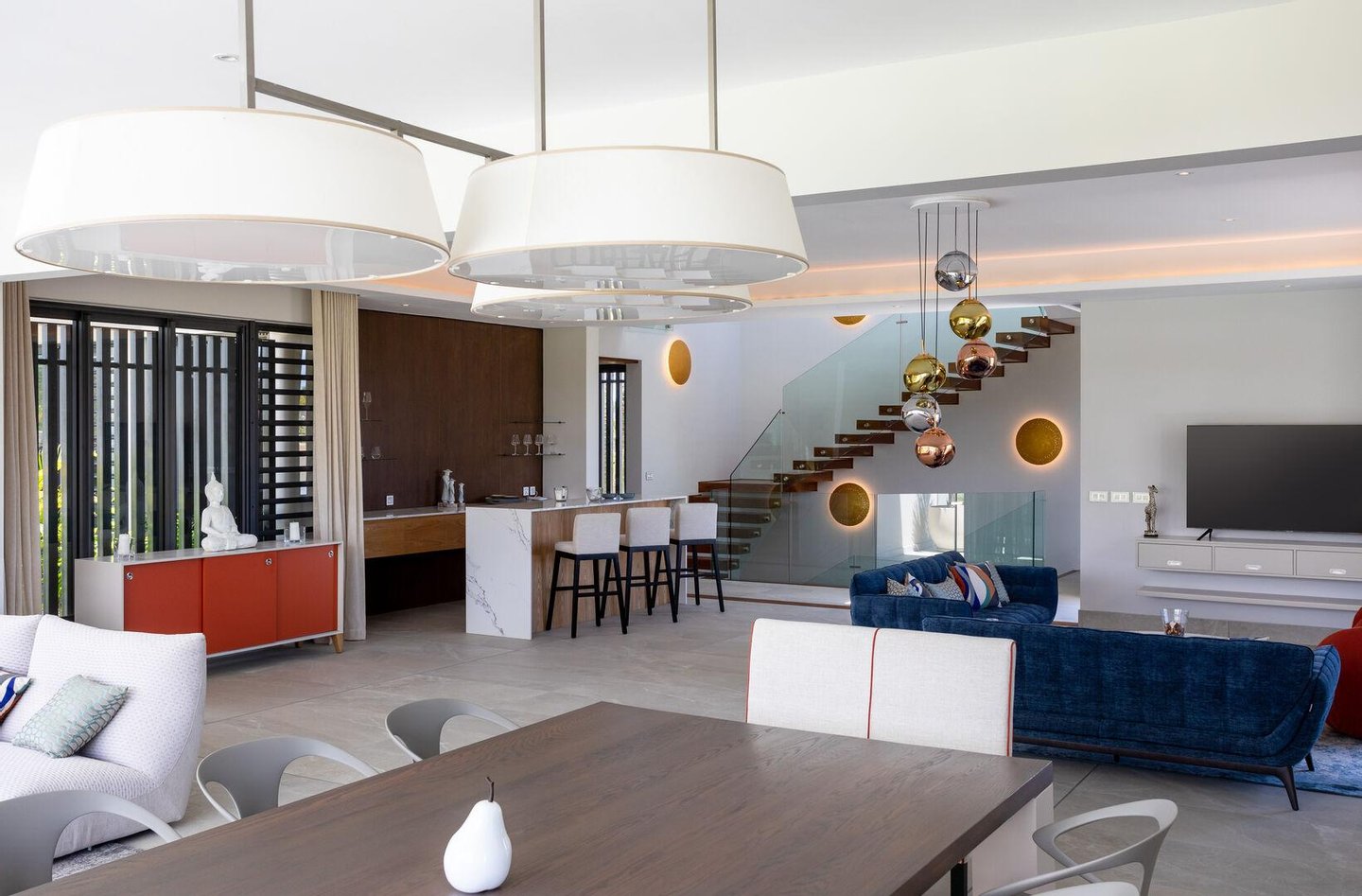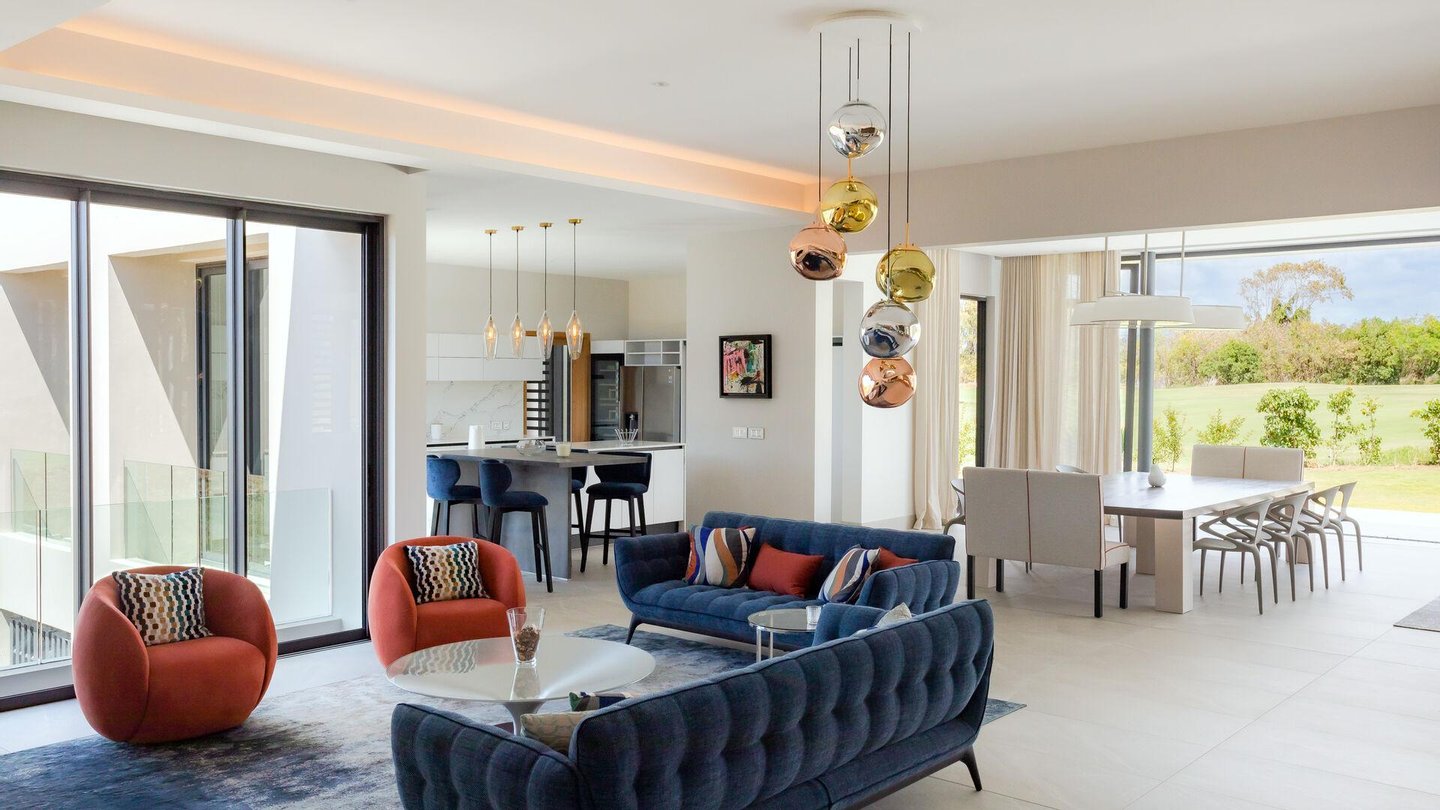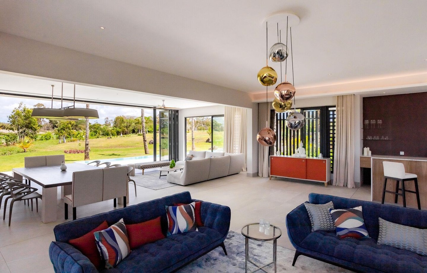 Atemberaubende Villa im Herzen des prestigeträchtigen Anwesens Anahita an der Ostküste mit Blick auf den Golfplatz. Sie werden ein großes Wohnzimmer entdecken, das sich auf die Terrasse und den Pool mit großen Fenstern öffnet, die einen Panoramablick