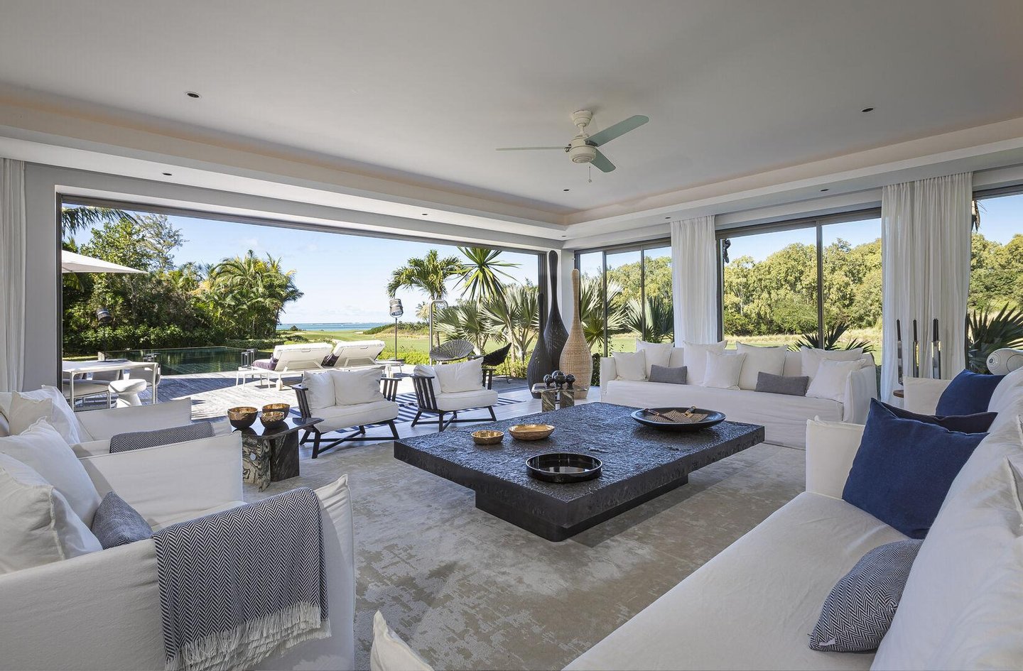 Stehende Villa im Herzen des prestigeträchtigen Anwesens Anahita an der Ostküste mit Meerblick von der Master-Suite und über den Golfplatz vom Wohnzimmer aus. In der Nähe des Four Seasons an der Ostküste. Sie werden ein großes Wohnzimmer entdecken,