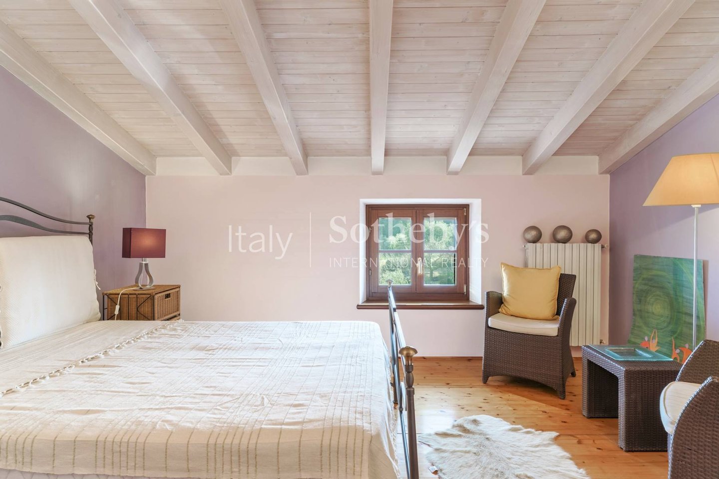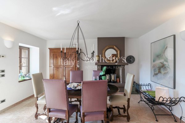 The main residence, measuring approximately 290 sqm (3.122 sq. ft), is a country house restored with attention to the original character of the farmhouse. Natural materials and traditional architectural features define interiors with a distinctive atmosphere. The living area includes a lounge with a barrel-vaulted ceiling and fireplace, connected to the dining area and open-plan kitchen. The sleeping quarters comprise five bedrooms and four bathrooms. On the top floor there is an independent guest apartment with kitchenette and a generous open-plan area offering additional sleeping accommodation.