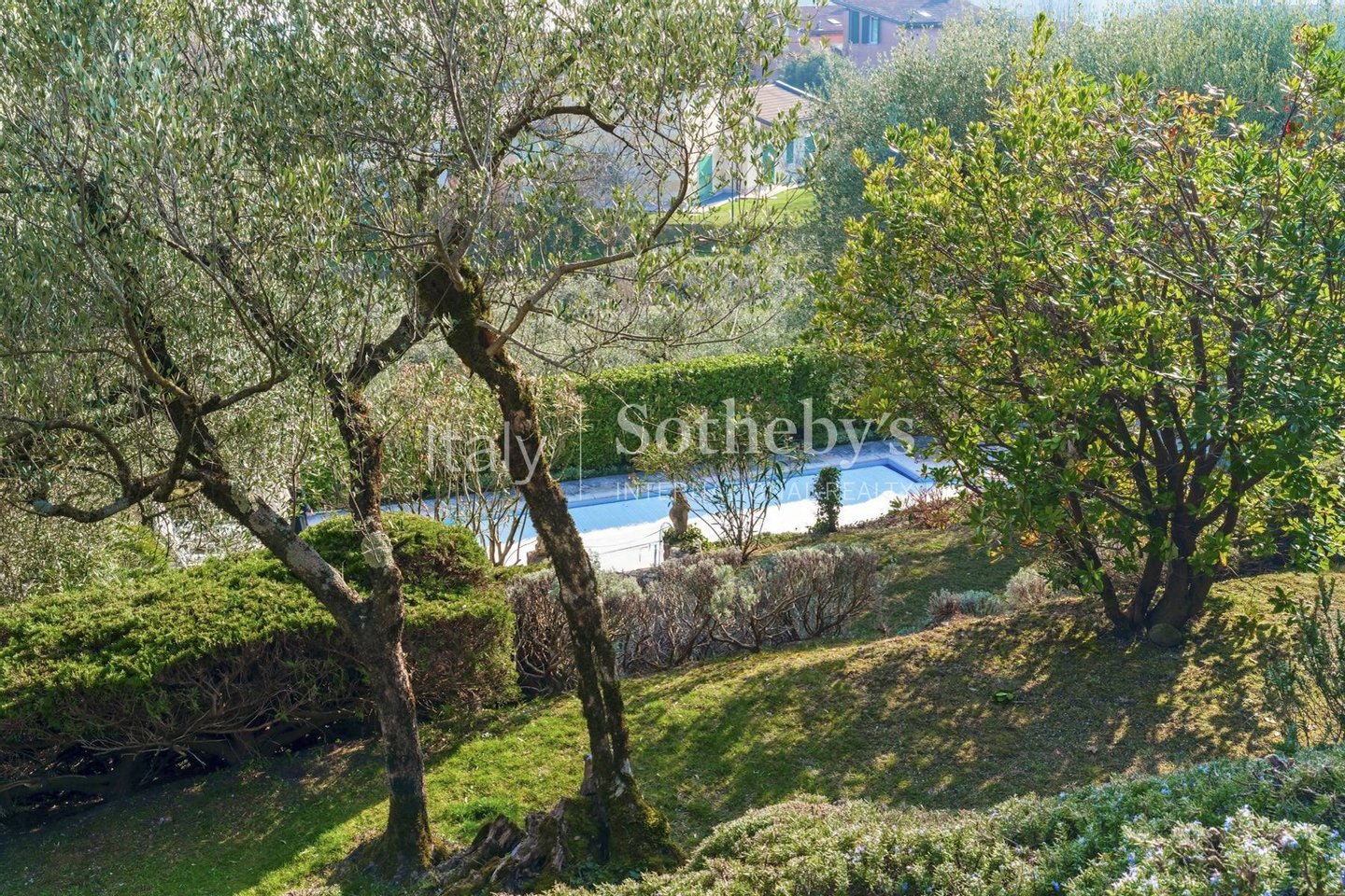 The estate extends over three levels and includes two adjacent buildings surrounded by a garden of approximately 3,000 sqm (32,291 sq. ft) featuring Mediterranean vegetation and a large private swimming pool that has been recently renovated.