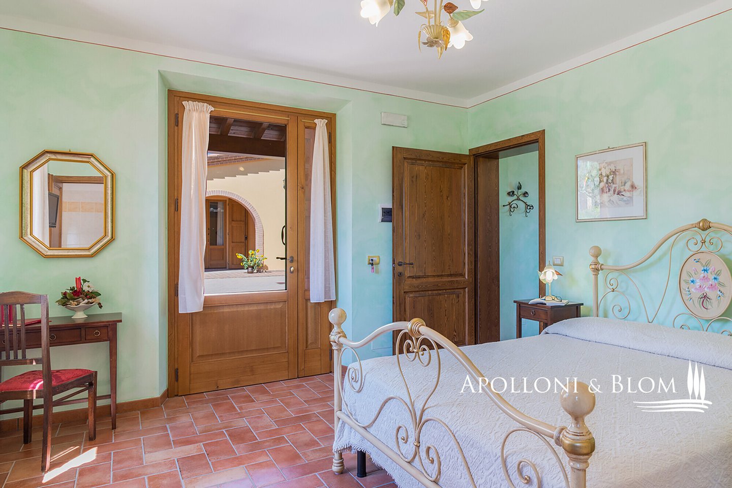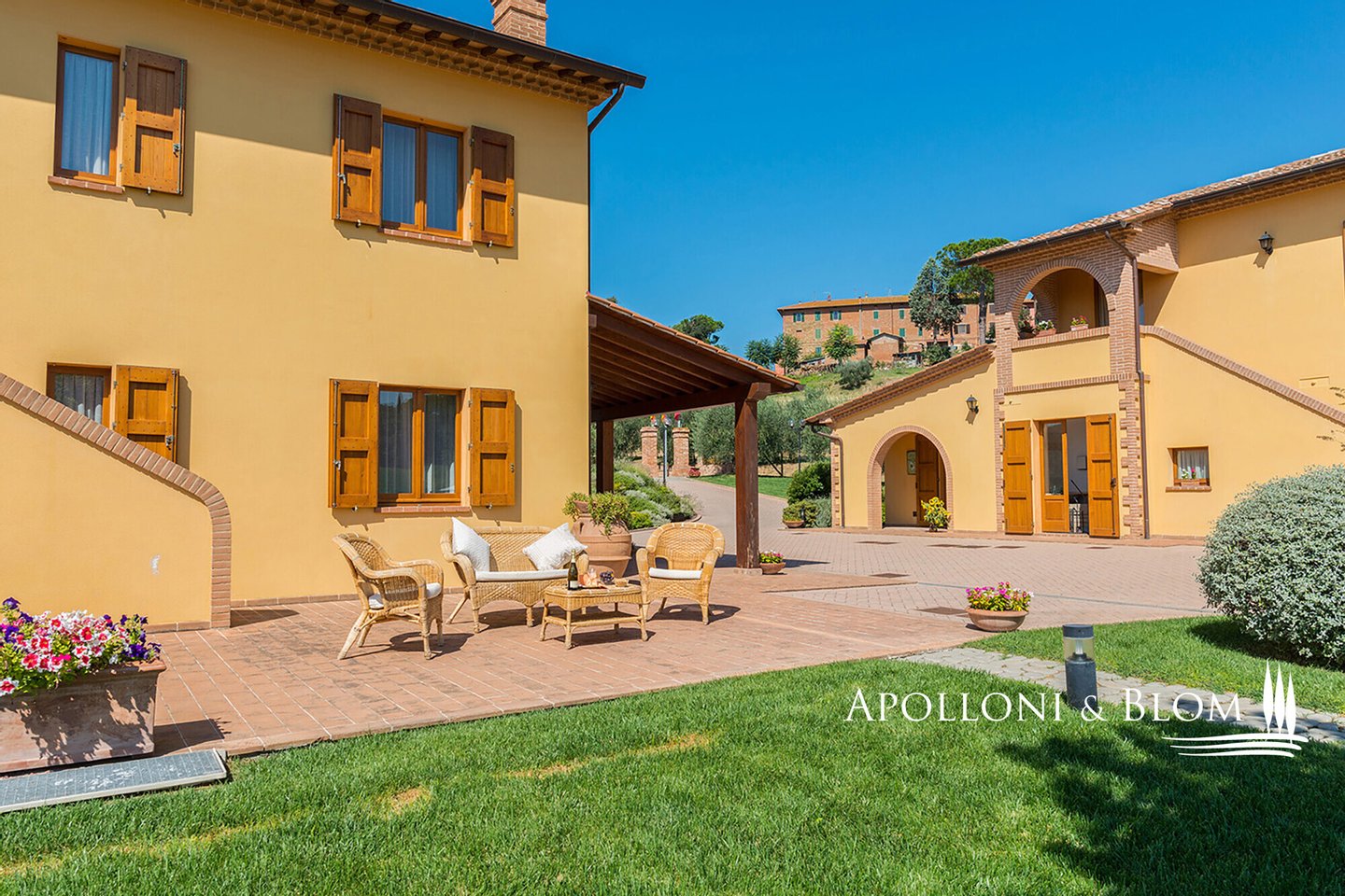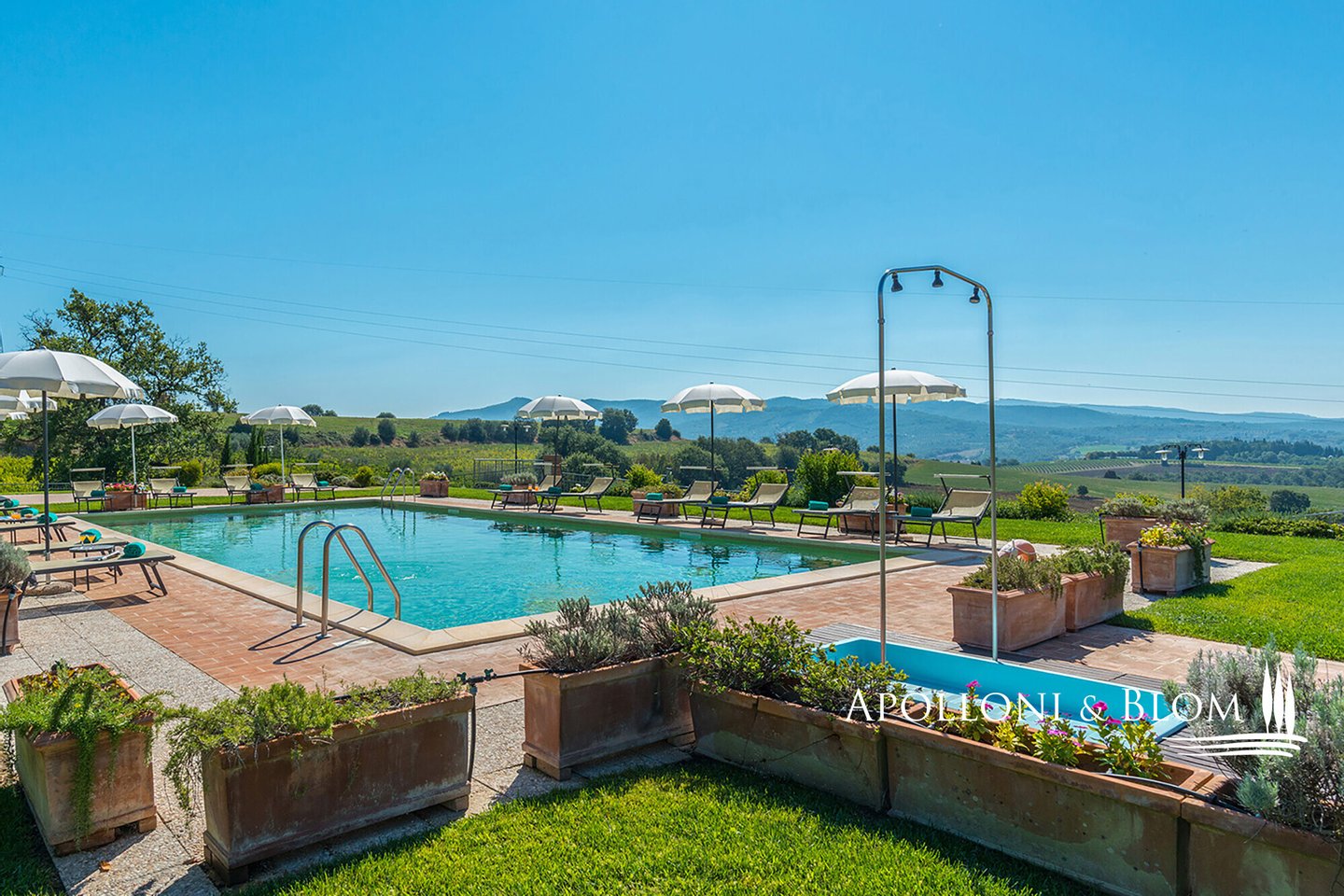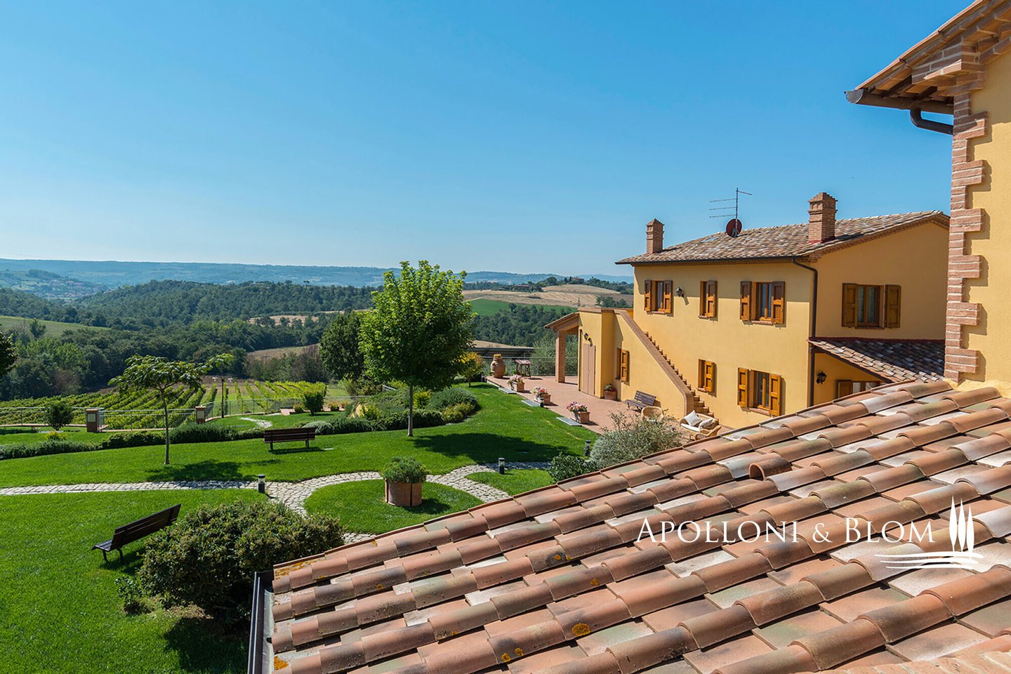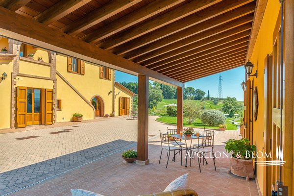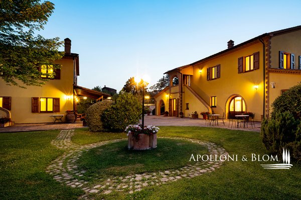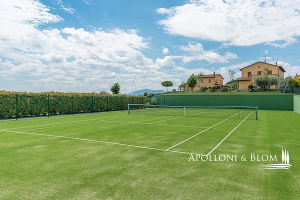 Jahrhundert mit zwei restaurierten Bauernhäusern und Nebengebäuden zum Verkauf. Auf dem sanften Bergrücken, der die Grenze zwischen der Toskana und Umbrien markiert, 3 km vom Ufer des Lago di Chiusi und 8 km vom Lago di Trasimeno entfernt, befindet sich ein Landgut mit großem Charakter, das die authentische Schönheit des Landlebens vermittelt. Auf mehr als 10 Hektar Privatgelände gelegen, wurde dieser antike ländliche Komplex aus dem 18. Jahrhundert einer Restaurierung unterzogen, die seine historische Seele bewahrt und gleichzeitig zeitgenössische Technologien und nachhaltige Lösungen eingeführt hat, elegant und funktionell, jetzt in der Energieklasse A4, in der Lage, den Charme der Tradition mit dem Komfort des modernen Lebens zu verbinden. Ein automatisches Tor führt zum Grundstück und zu einer gepflasterten Zufahrt, die den Park durchquert und sofort ein Gefühl von Privatsphäre und Harmonie mit der umgebenden Landschaft vermittelt. Im Zentrum des Anwesens befinden sich zwei alte Bauernhäuser, die von viel Grün umgeben sind und für das Familienleben, für Gäste oder für einen charmanten Gastgewerbebetrieb mit natürlicher Eleganz ausgelegt sind. Insgesamt bietet das Anwesen eine Fläche von 1.255 Quadratmetern, die sich auf helle und freundliche Räume verteilen, die alle mit Klimaanlage ausgestattet sind. Das erste Haus vereint gesellige Räume und unabhängige Wohnungen. Im Erdgeschoss befinden sich ein Empfangsbereich, ein reizvoller Speisesaal mit Backsteinbögen und Kamin, eine professionelle Küche und Wirtschaftsräume. Das Gebäude wird durch drei Wohnungen mit Wohnzimmer und Küche mit insgesamt vier Schlafzimmern und drei Bädern ergänzt. Das zweite Bauernhaus wurde als raffinierter Hospitality-Bereich konzipiert. Vier Zimmer mit eigenem Bad öffnen sich direkt auf die Pergola und den grünen Blick auf den Garten, während sich im Obergeschoss eine Panoramaterrasse und zwei unabhängige Wohnungen befinden, die aus Wohnzimmer mit Küche, Schlafzimmer und Bad bestehen. Das Untergeschoss beherbergt Technikräume und multifunktionale Räume, die sich leicht in Hobby- und Freizeitbereiche umwandeln lassen. Rundherum erstreckt sich der Park des Anwesens, ein Ort, an dem man die Freuden des Landlebens genießen kann: ein Panoramaschwimmbad, ein Tennisplatz, schattige Bereiche und offene Rasenflächen schaffen die perfekte Atmosphäre für Sommertage im Freien und Essen im Freien. Das Anwesen behält auch seine landwirtschaftliche Berufung bei. 120 Olivenbäume produzieren natives Olivenöl extra, während 2,4 Hektar Weinberge, die mit Grechetto Bianco DOC, Sangiovese und Cabernet Sauvignon bepflanzt sind, die Möglichkeit für eine kleine Weinproduktion bieten. Das Anwesen wird durch eine Reihe von Nebengebäuden vervollständigt, darunter ein 440 Quadratmeter großes Kellergeschoss, in dem ein Wellness- und Spa-Bereich eingerichtet werden kann, sowie ein Gebäude für die Lagerung von landwirtschaftlichen Erzeugnissen, dessen Dach mit Photovoltaik-Paneelen ausgestattet ist. Das gesamte Anwesen wird durch eine 29,9-kW-Solaranlage, einen artesischen Brunnen, eine Regenwassersammlung und hocheffiziente technische Systeme unterstützt. Das Anwesen ist sofort bewohnbar und eignet sich ideal als Landsitz für eine große Familie, als Treffpunkt für Freunde und verschiedene Generationen oder als touristisches Beherbergungsprojekt.