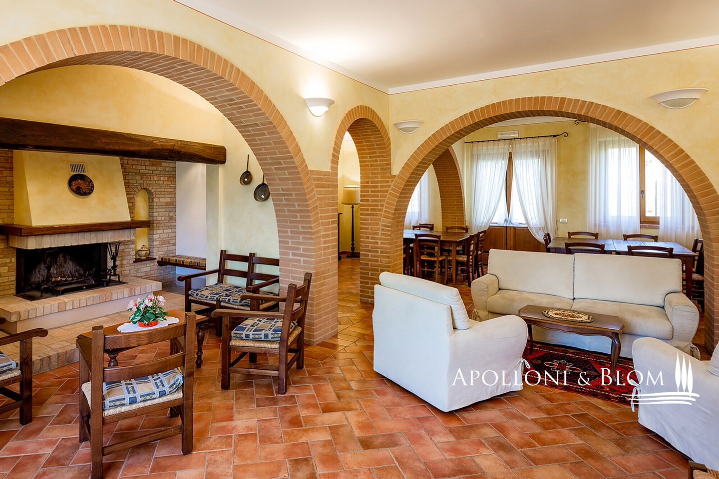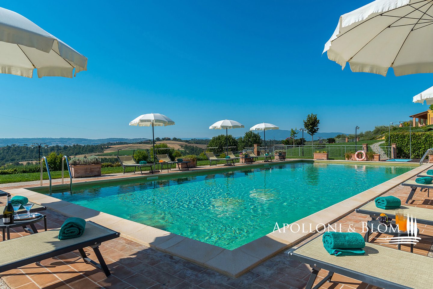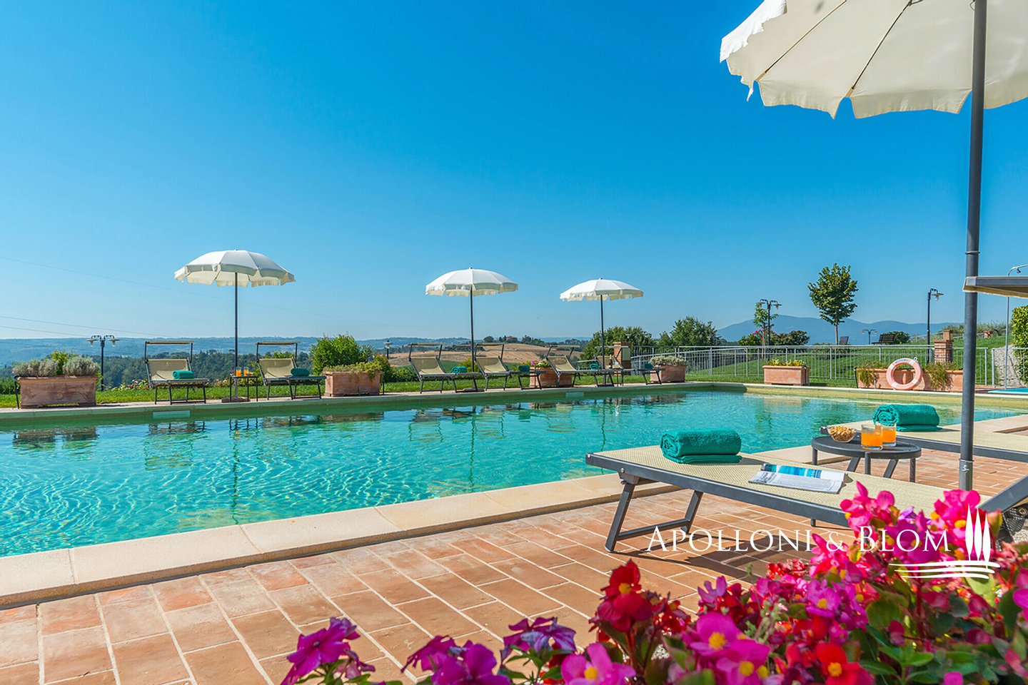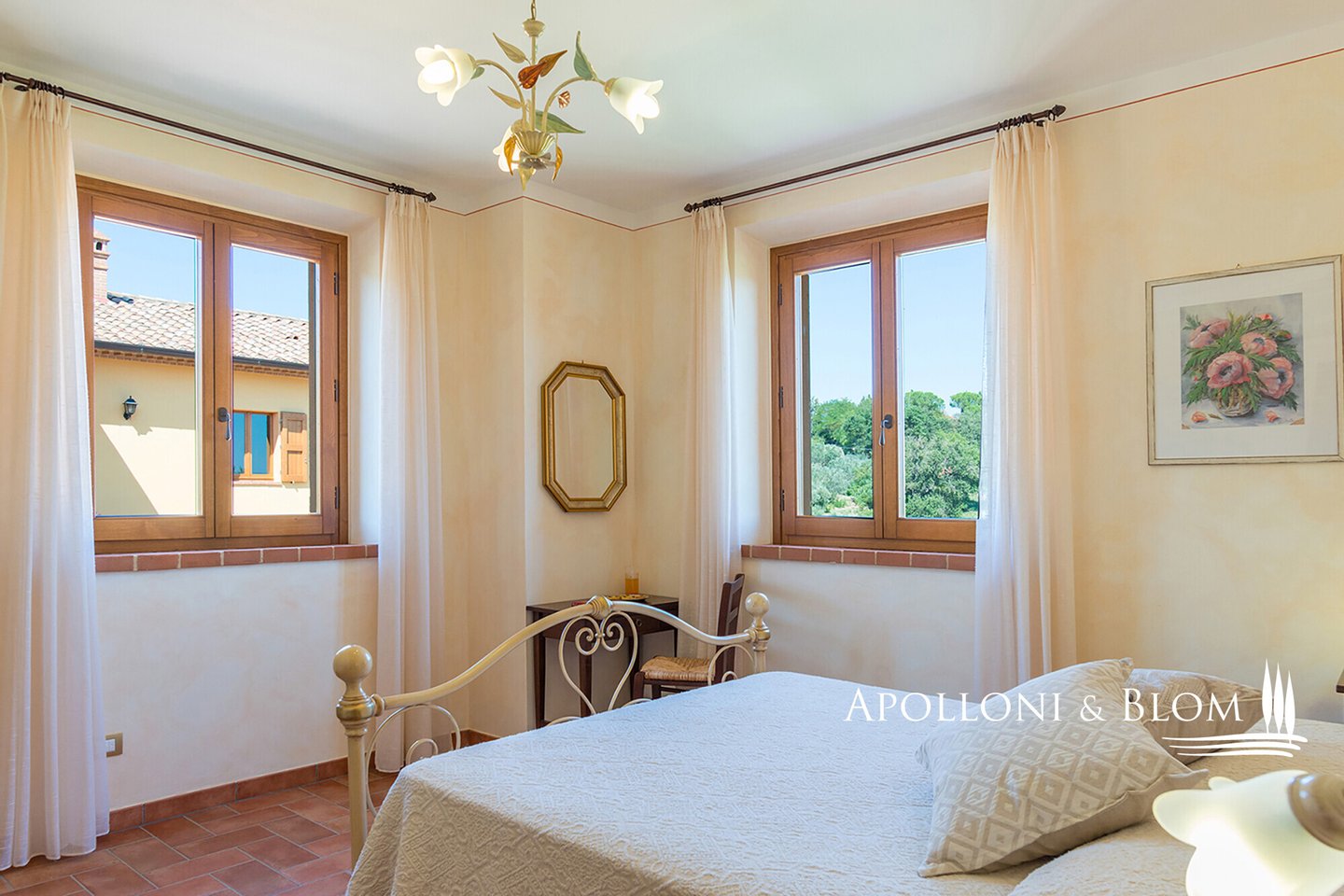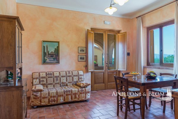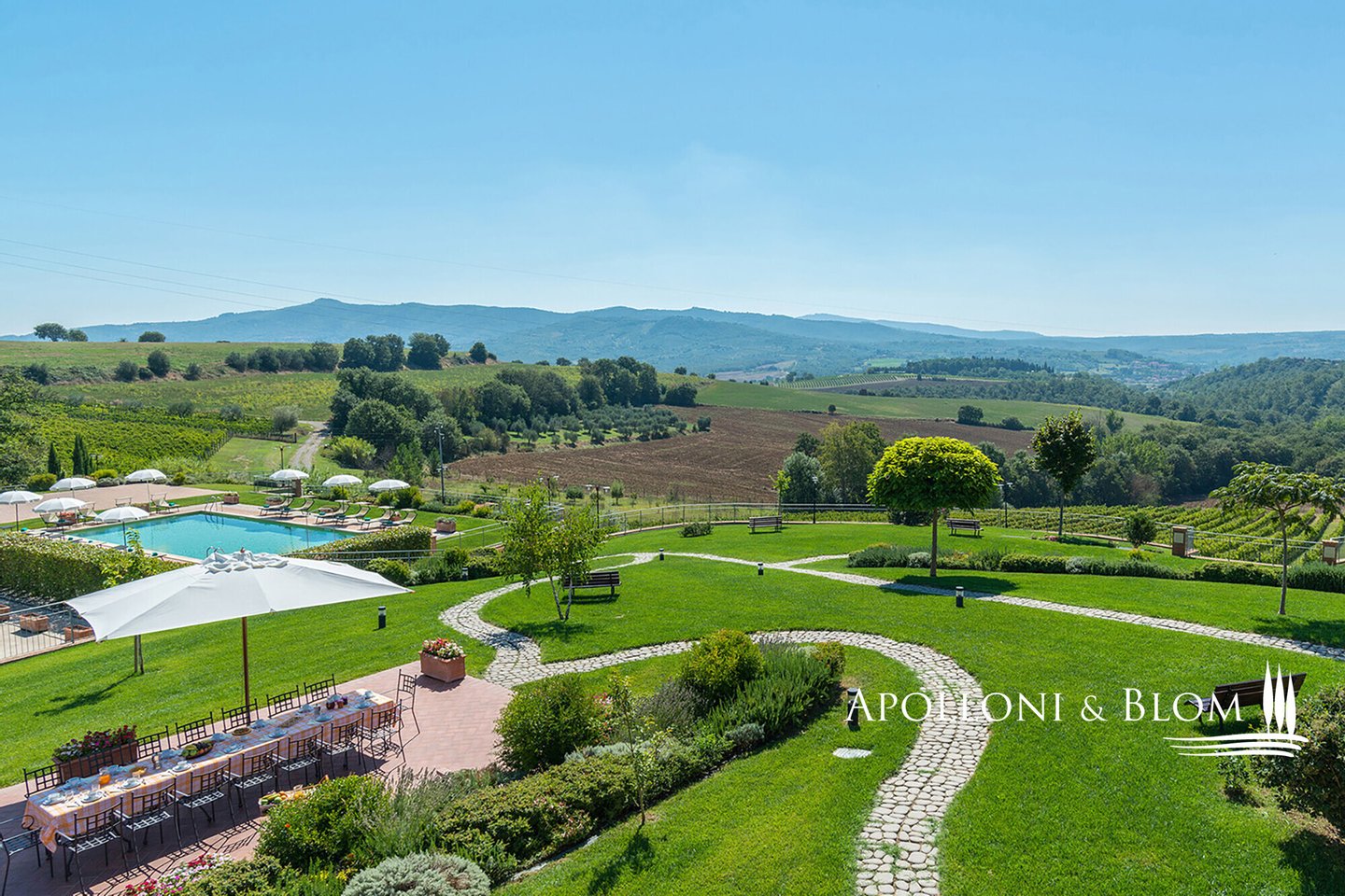 Jahrhundert mit zwei restaurierten Bauernhäusern und Nebengebäuden zum Verkauf. Auf dem sanften Bergrücken, der die Grenze zwischen der Toskana und Umbrien markiert, 3 km vom Ufer des Lago di Chiusi und 8 km vom Lago di Trasimeno entfernt, befindet sich ein Landgut mit großem Charakter, das die authentische Schönheit des Landlebens vermittelt. Auf mehr als 10 Hektar Privatgelände gelegen, wurde dieser antike ländliche Komplex aus dem 18. Jahrhundert einer Restaurierung unterzogen, die seine historische Seele bewahrt und gleichzeitig zeitgenössische Technologien und nachhaltige Lösungen eingeführt hat, elegant und funktionell, jetzt in der Energieklasse A4, in der Lage, den Charme der Tradition mit dem Komfort des modernen Lebens zu verbinden. Ein automatisches Tor führt zum Grundstück und zu einer gepflasterten Zufahrt, die den Park durchquert und sofort ein Gefühl von Privatsphäre und Harmonie mit der umgebenden Landschaft vermittelt. Im Zentrum des Anwesens befinden sich zwei alte Bauernhäuser, die von viel Grün umgeben sind und für das Familienleben, für Gäste oder für einen charmanten Gastgewerbebetrieb mit natürlicher Eleganz ausgelegt sind. Insgesamt bietet das Anwesen eine Fläche von 1.255 Quadratmetern, die sich auf helle und freundliche Räume verteilen, die alle mit Klimaanlage ausgestattet sind. Das erste Haus vereint gesellige Räume und unabhängige Wohnungen. Im Erdgeschoss befinden sich ein Empfangsbereich, ein reizvoller Speisesaal mit Backsteinbögen und Kamin, eine professionelle Küche und Wirtschaftsräume. Das Gebäude wird durch drei Wohnungen mit Wohnzimmer und Küche mit insgesamt vier Schlafzimmern und drei Bädern ergänzt. Das zweite Bauernhaus wurde als raffinierter Hospitality-Bereich konzipiert. Vier Zimmer mit eigenem Bad öffnen sich direkt auf die Pergola und den grünen Blick auf den Garten, während sich im Obergeschoss eine Panoramaterrasse und zwei unabhängige Wohnungen befinden, die aus Wohnzimmer mit Küche, Schlafzimmer und Bad bestehen. Das Untergeschoss beherbergt Technikräume und multifunktionale Räume, die sich leicht in Hobby- und Freizeitbereiche umwandeln lassen. Rundherum erstreckt sich der Park des Anwesens, ein Ort, an dem man die Freuden des Landlebens genießen kann: ein Panoramaschwimmbad, ein Tennisplatz, schattige Bereiche und offene Rasenflächen schaffen die perfekte Atmosphäre für Sommertage im Freien und Essen im Freien. Das Anwesen behält auch seine landwirtschaftliche Berufung bei. 120 Olivenbäume produzieren natives Olivenöl extra, während 2,4 Hektar Weinberge, die mit Grechetto Bianco DOC, Sangiovese und Cabernet Sauvignon bepflanzt sind, die Möglichkeit für eine kleine Weinproduktion bieten. Das Anwesen wird durch eine Reihe von Nebengebäuden vervollständigt, darunter ein 440 Quadratmeter großes Kellergeschoss, in dem ein Wellness- und Spa-Bereich eingerichtet werden kann, sowie ein Gebäude für die Lagerung von landwirtschaftlichen Erzeugnissen, dessen Dach mit Photovoltaik-Paneelen ausgestattet ist. Das gesamte Anwesen wird durch eine 29,9-kW-Solaranlage, einen artesischen Brunnen, eine Regenwassersammlung und hocheffiziente technische Systeme unterstützt. Das Anwesen ist sofort bewohnbar und eignet sich ideal als Landsitz für eine große Familie, als Treffpunkt für Freunde und verschiedene Generationen oder als touristisches Beherbergungsprojekt.