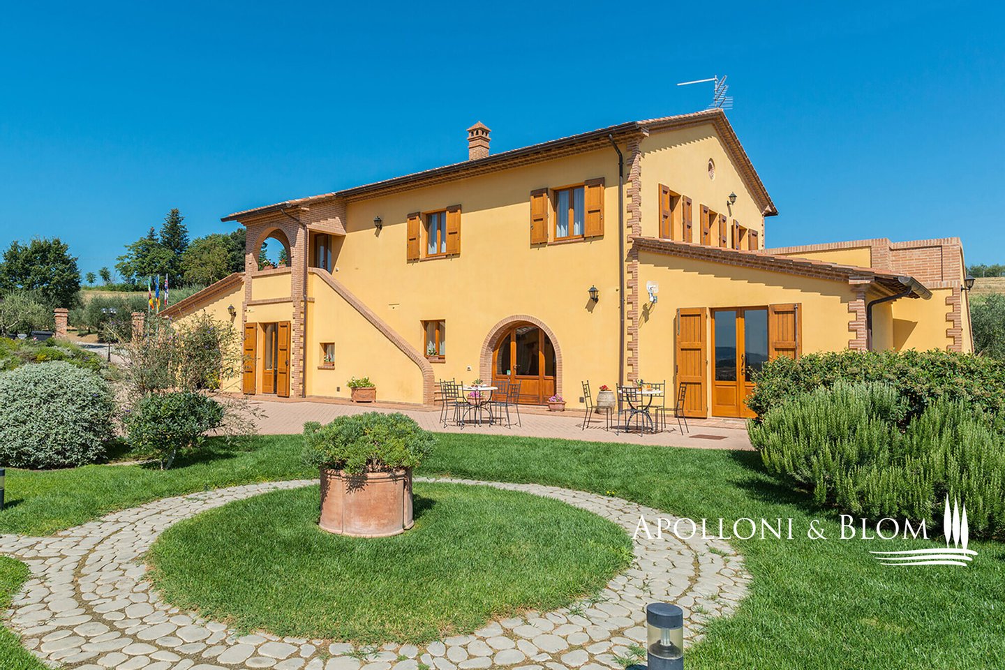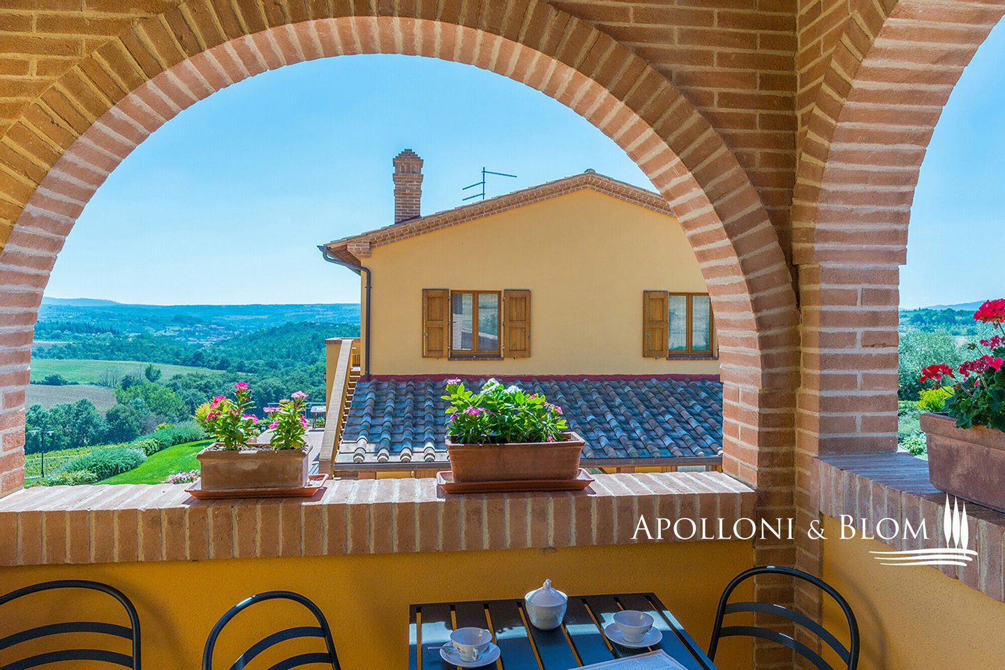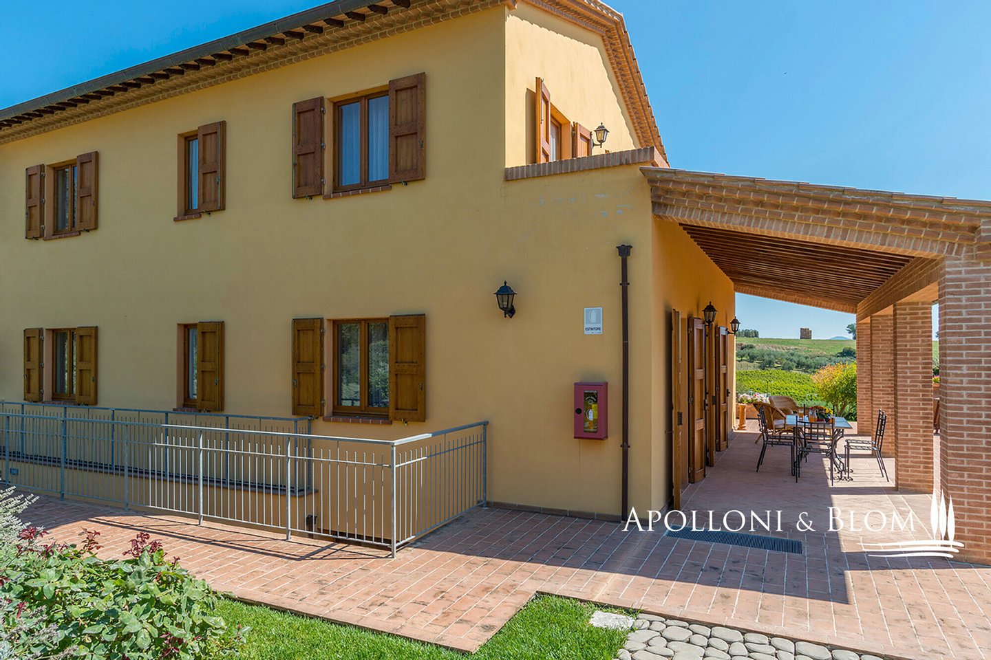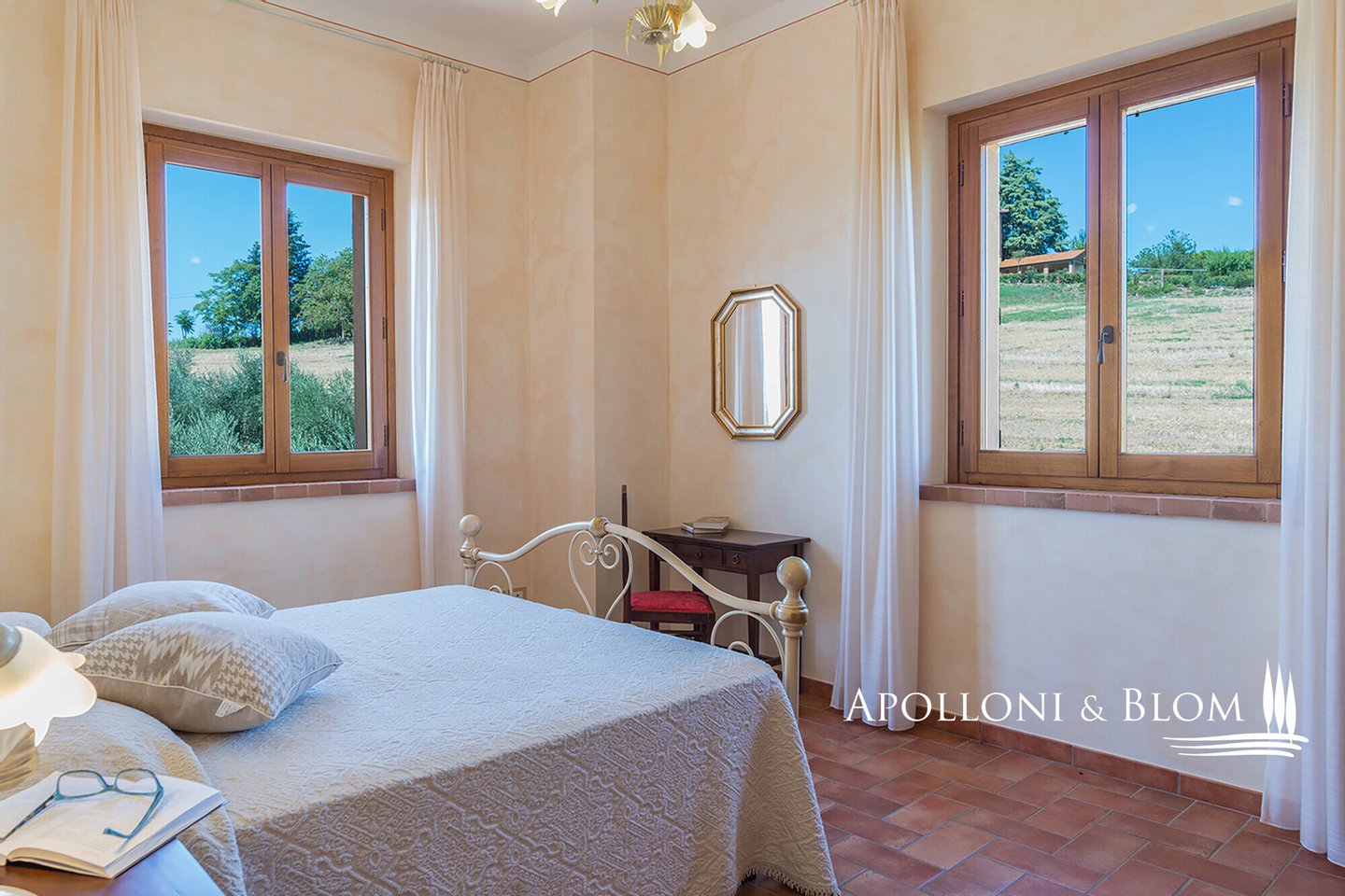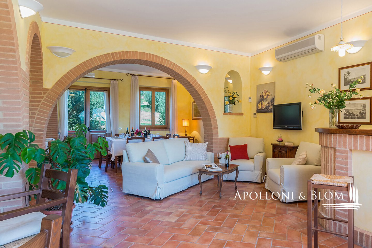 Jahrhundert mit zwei restaurierten Bauernhäusern und Nebengebäuden zum Verkauf. Auf dem sanften Bergrücken, der die Grenze zwischen der Toskana und Umbrien markiert, 3 km vom Ufer des Lago di Chiusi und 8 km vom Lago di Trasimeno entfernt, befindet sich ein Landgut mit großem Charakter, das die authentische Schönheit des Landlebens vermittelt. Auf mehr als 10 Hektar Privatgelände gelegen, wurde dieser antike ländliche Komplex aus dem 18. Jahrhundert einer Restaurierung unterzogen, die seine historische Seele bewahrt und gleichzeitig zeitgenössische Technologien und nachhaltige Lösungen eingeführt hat, elegant und funktionell, jetzt in der Energieklasse A4, in der Lage, den Charme der Tradition mit dem Komfort des modernen Lebens zu verbinden. Ein automatisches Tor führt zum Grundstück und zu einer gepflasterten Zufahrt, die den Park durchquert und sofort ein Gefühl von Privatsphäre und Harmonie mit der umgebenden Landschaft vermittelt. Im Zentrum des Anwesens befinden sich zwei alte Bauernhäuser, die von viel Grün umgeben sind und für das Familienleben, für Gäste oder für einen charmanten Gastgewerbebetrieb mit natürlicher Eleganz ausgelegt sind. Insgesamt bietet das Anwesen eine Fläche von 1.255 Quadratmetern, die sich auf helle und freundliche Räume verteilen, die alle mit Klimaanlage ausgestattet sind. Das erste Haus vereint gesellige Räume und unabhängige Wohnungen. Im Erdgeschoss befinden sich ein Empfangsbereich, ein reizvoller Speisesaal mit Backsteinbögen und Kamin, eine professionelle Küche und Wirtschaftsräume. Das Gebäude wird durch drei Wohnungen mit Wohnzimmer und Küche mit insgesamt vier Schlafzimmern und drei Bädern ergänzt. Das zweite Bauernhaus wurde als raffinierter Hospitality-Bereich konzipiert. Vier Zimmer mit eigenem Bad öffnen sich direkt auf die Pergola und den grünen Blick auf den Garten, während sich im Obergeschoss eine Panoramaterrasse und zwei unabhängige Wohnungen befinden, die aus Wohnzimmer mit Küche, Schlafzimmer und Bad bestehen. Das Untergeschoss beherbergt Technikräume und multifunktionale Räume, die sich leicht in Hobby- und Freizeitbereiche umwandeln lassen. Rundherum erstreckt sich der Park des Anwesens, ein Ort, an dem man die Freuden des Landlebens genießen kann: ein Panoramaschwimmbad, ein Tennisplatz, schattige Bereiche und offene Rasenflächen schaffen die perfekte Atmosphäre für Sommertage im Freien und Essen im Freien. Das Anwesen behält auch seine landwirtschaftliche Berufung bei. 120 Olivenbäume produzieren natives Olivenöl extra, während 2,4 Hektar Weinberge, die mit Grechetto Bianco DOC, Sangiovese und Cabernet Sauvignon bepflanzt sind, die Möglichkeit für eine kleine Weinproduktion bieten. Das Anwesen wird durch eine Reihe von Nebengebäuden vervollständigt, darunter ein 440 Quadratmeter großes Kellergeschoss, in dem ein Wellness- und Spa-Bereich eingerichtet werden kann, sowie ein Gebäude für die Lagerung von landwirtschaftlichen Erzeugnissen, dessen Dach mit Photovoltaik-Paneelen ausgestattet ist. Das gesamte Anwesen wird durch eine 29,9-kW-Solaranlage, einen artesischen Brunnen, eine Regenwassersammlung und hocheffiziente technische Systeme unterstützt. Das Anwesen ist sofort bewohnbar und eignet sich ideal als Landsitz für eine große Familie, als Treffpunkt für Freunde und verschiedene Generationen oder als touristisches Beherbergungsprojekt.