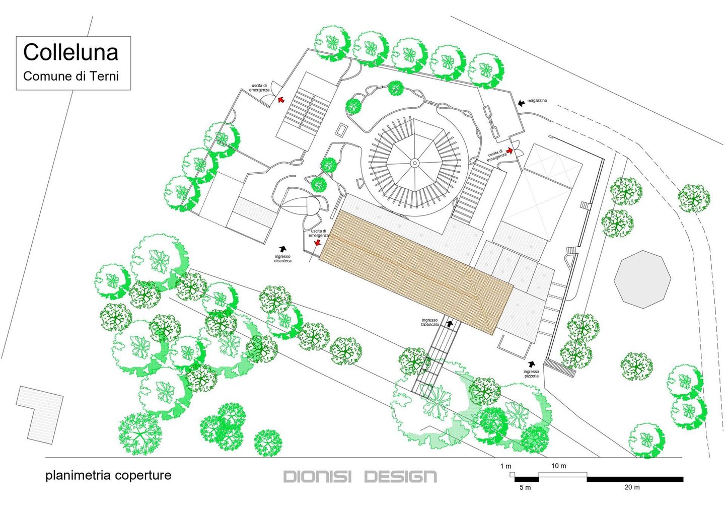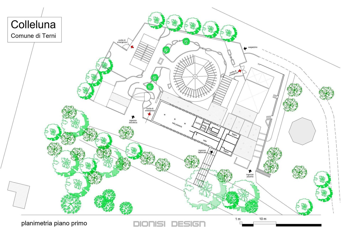 Die geografische Lage, die Geländebeschaffenheit und das verfügbare große Volumen machen dieses Eigentum geeignet für die Realisierung eines neuen Projekts, erneut ein Bezugspunkt des Gebiets. Die Lage ist privilegiert im nordwestlich leicht versetzten Bereich der Terniner Mulde, mit freier Rundumsicht, rund 360 Grad. Das umliegende Gelände ist nahezu flach und erstreckt sich über ca. 2,8 Hektar, mit Oliven- und Palmenstreuung sowie einigen Zypressen am Eingang.