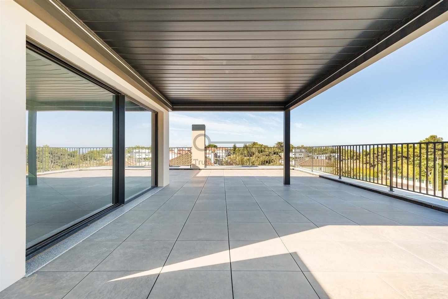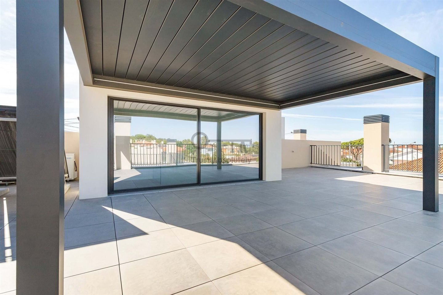 Mit einer Bruttofläche von 580 m2 verteilt auf 3 Etagen, Garage für vier Fahrzeuge, Roof-Top von 60 m2 mit erweiterbarer Pergola.
