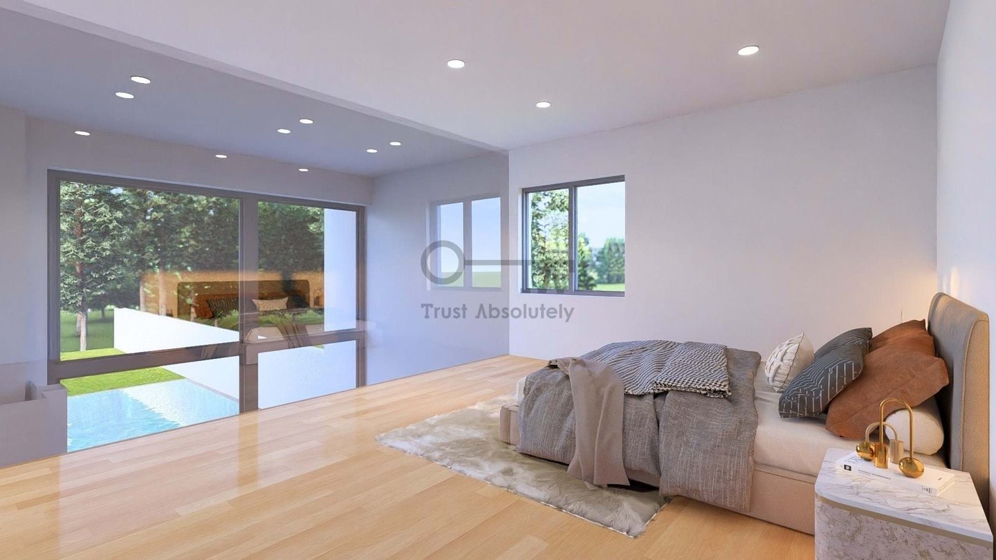 Im 2. Stock gibt es drei Suiten, alle mit Balkon, eine davon die Master-Suite mit 35 m2 und Zugang zum Roof Top.