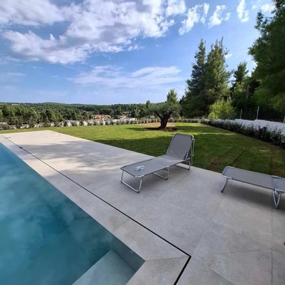 In einer der beeindruckendsten und malerischsten Gegenden von Chalkidiki, in Sani, steht ein außergewöhnliches Wohnhaus mit 87 m² zum Verkauf, das sich im Bau befindet. Die Immobilie vereint moderne Architektur mit der natürlichen Schönheit der Landschaft und stellt eine einzigartige Investitionsmöglichkeit dar, ebenso wie eine ideale Wohnwahl für diejenigen, die Luxus und Ruhe suchen. Das Wohnhaus zeichnet sich durch ein modernes, minimalistisches Design mit klaren Linien, großzügigen Innenräumen und hochwertigen Baustellenmaterialien aus. Die Außenansicht kombiniert Naturstein mit weißen und dunklen Farbtönen und schafft eine harmonische Komposition, die sich perfekt in die natürliche Umgebung einfügt. Große Glasflächen lassen reichlich Tageslicht einströmen und bieten uneingeschränkten Blick auf die Natur und die Außenbereiche. Das Innere wurde mit Schwerpunkt auf Komfort und Funktionalität gestaltet. Das Wohnzimmer, die Küche und der Essbereich folgen einem offenen Grundriss und verstärken das Gefühl von Geräumigkeit und Luxus. Erdige Farbtöne, Holzböden und dezente Beleuchtung schaffen eine warme und einladende Atmosphäre. Die Wohnung verfügt über zwei geräumige Schlafzimmer, die auf absolute Entspannung ausgelegt sind, mit komfortablen Kleiderschränken und Zugang zu privaten Außenbereichen. Die Badezimmer sind mit luxuriösen Materialien ausgestattet und verfügen über moderne Walk-In-Duschen mit Glasoberflächen und hochwertigen Sanitärartikeln. Die Außenbereiche sind ebenso beeindruckend und umfassen einen privaten Pool, ein Holzdeck und einen schön angelegten Garten. Die großzügige Terrasse ist der ideale Ort zum Entspannen oder für gesellige Anlässe, während die moderne Pergola Schatten und Schutz bietet. Darüber hinaus gibt es einen privaten Parkplatz mit einem eleganten Carport. Sani ist eines der luxuriösesten und gefragtesten Reiseziele in Chalkidiki, bekannt für seine goldenen Strände und kristallklaren Gewässer. Die Gegend bietet hochwertige Infrastruktur, Restaurants, Unterhaltungsmöglichkeiten und Wellnesseinrichtungen, während die natürliche Umgebung eine einzigartige Kulisse für diejenigen schafft, die Ruhe ohne Kompromisse beim Luxus genießen möchten. Mit dem Bau in vollem Gange ist diese Wohnung eine hervorragende Gelegenheit, eine hochwertige Immobilie in Chalkidiki zu erwerben, sei es für private Nutzung oder touristische Vermietung, und sichert damit eine bedeutende Rendite.