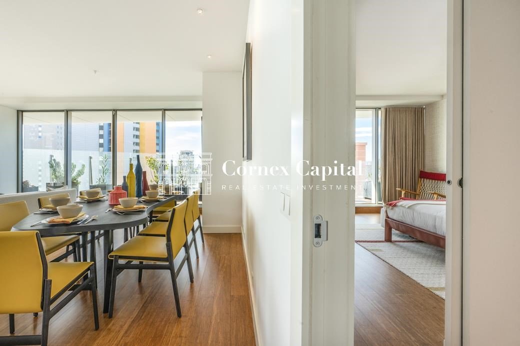 THE PENTHOUSES: On the 26th floor, the pinnacle of Antares, 100 meters high, the penthouses occupy the entire floor of the building, making them the highest and most desirable residences in Barcelona. Feel like you're living on cloud nine in one of the world's most elegant cities, thanks to its exceptional double-height ceilings, floor-to-ceiling windows, and spacious private terraces—perfect spaces for entertaining or al fresco dining with the Mediterranean as your backdrop.