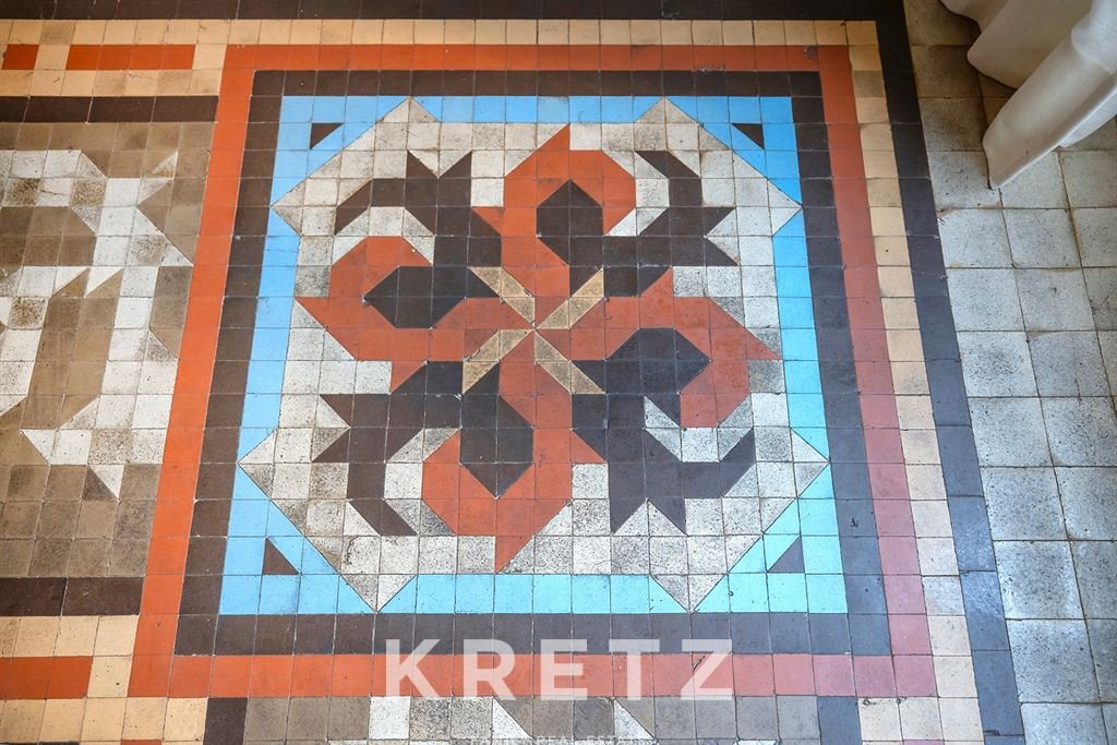 The large living room, flooded with natural light, features the original Nolla mosaic flooring, a true modernist treasure. Three balconies open onto the street, creating a direct connection with the vibrant life of the Eixample.
