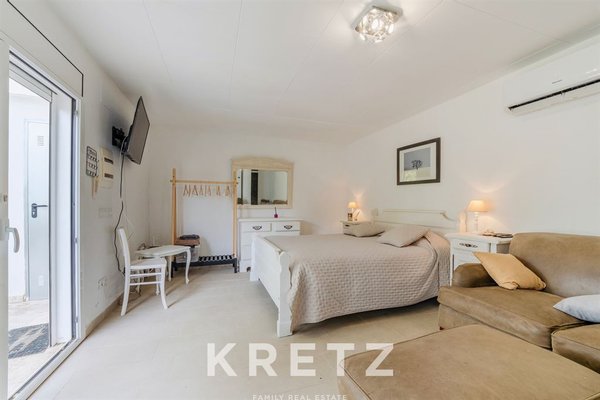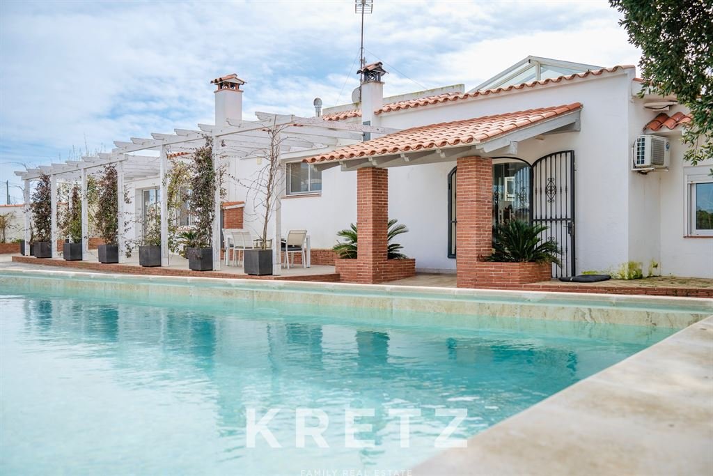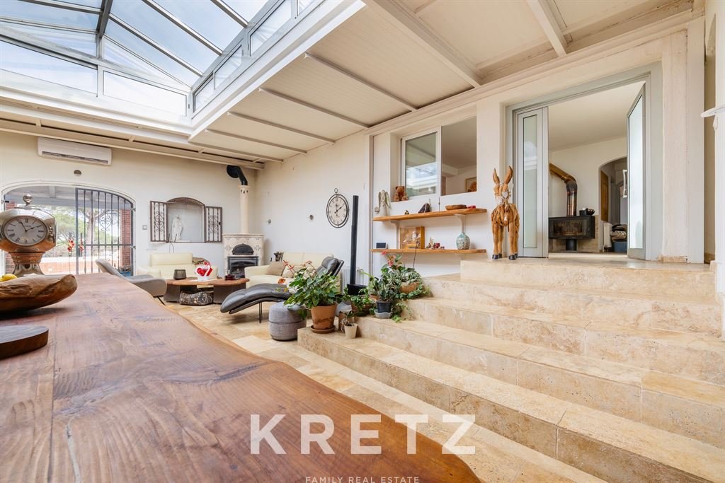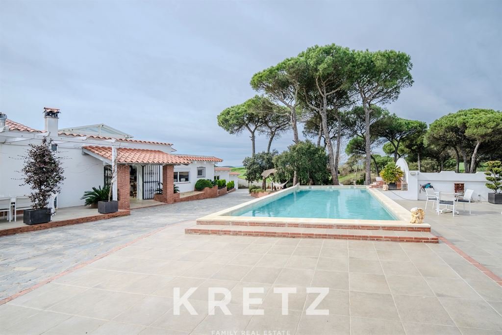 The main house, fully renovated in 2020, offers 1,064 m² of built area with 365 m² of usable living space, all distributed on a single level. It features 5 bedrooms and 5 bathrooms, with spacious, bright interiors.