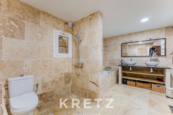 The interior living areas open directly onto the outdoor spaces, creating a seamless connection with the garden, terraces and swimming pool. The exterior includes a pool integrated into the natural surroundings, two chill-out areas, extensive green spaces and private zones ensuring peace and discretion.
