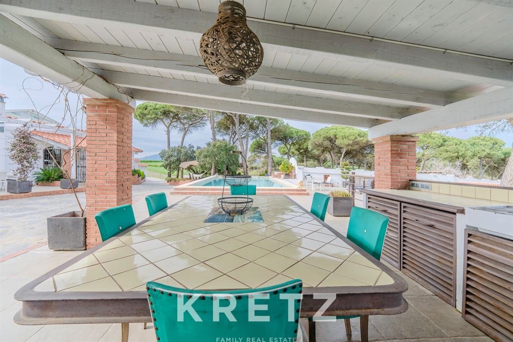 The main house, fully renovated in 2020, offers 1,064 m² of built area with 365 m² of usable living space, all distributed on a single level. It features 5 bedrooms and 5 bathrooms, with spacious, bright interiors.