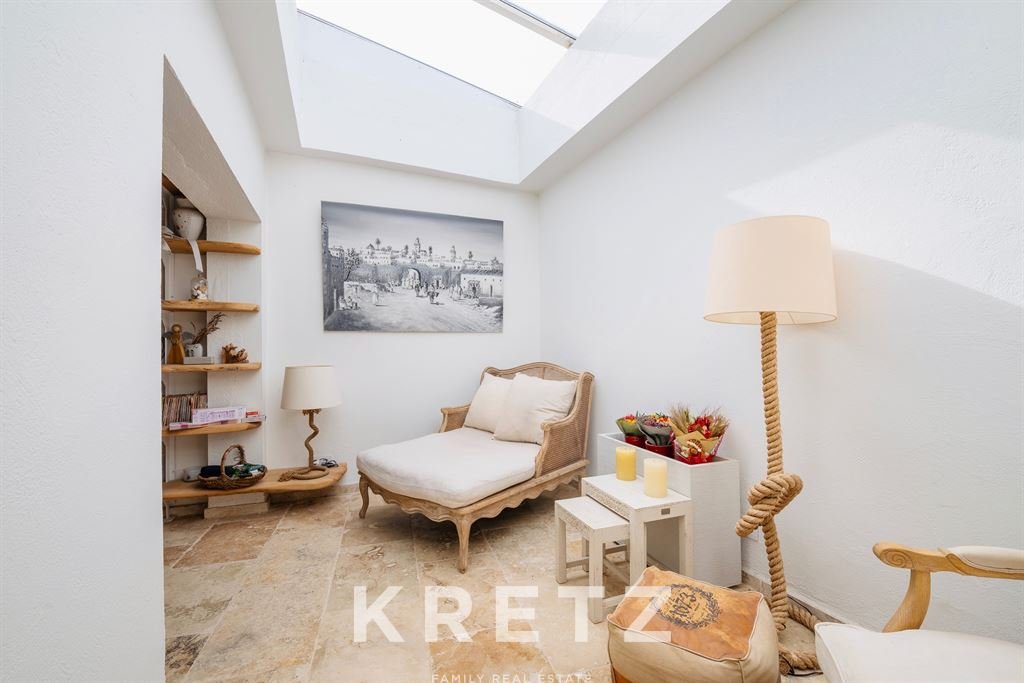 The interior living areas open directly onto the outdoor spaces, creating a seamless connection with the garden, terraces and swimming pool. The exterior includes a pool integrated into the natural surroundings, two chill-out areas, extensive green spaces and private zones ensuring peace and discretion.