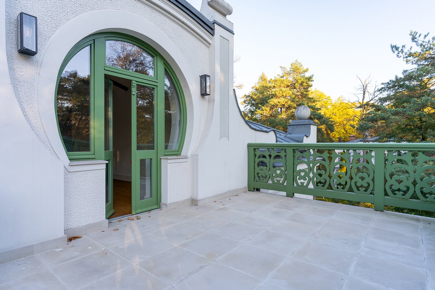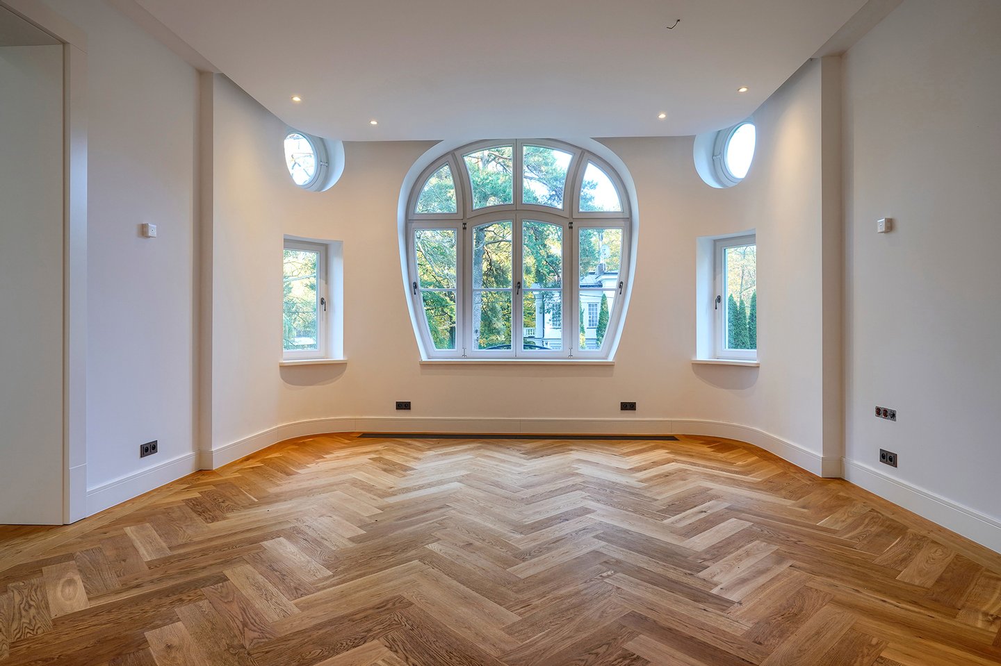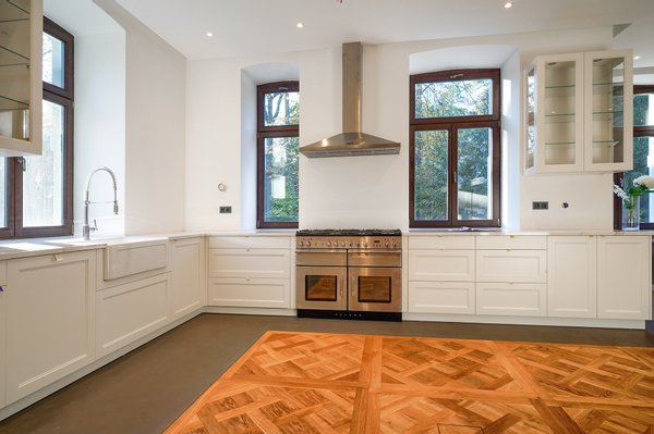 Die Villa wurde vollständig rekonstruiert – alle Wände und Decken wurden von Grund auf neu gebaut. Dadurch konnte ein vollständig zeitgenössisches funktionales Grundriss mit einer beeindruckenden Treppe, breiten Hallen und Räumen geschaffen werden, die Wohn-, Privat- und Freizeitbereiche auf natürliche Weise verbinden.