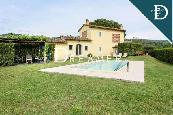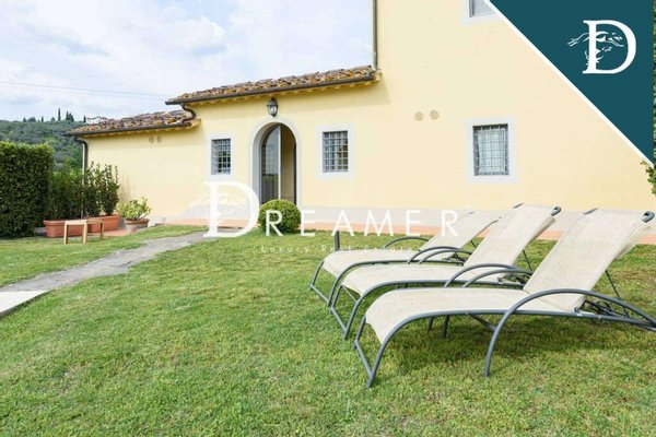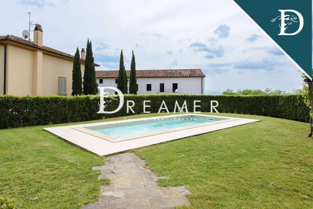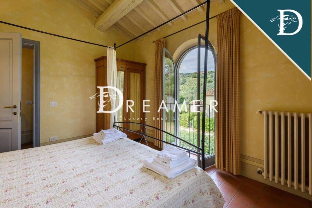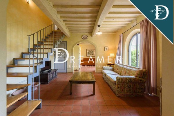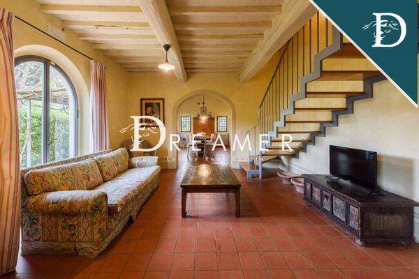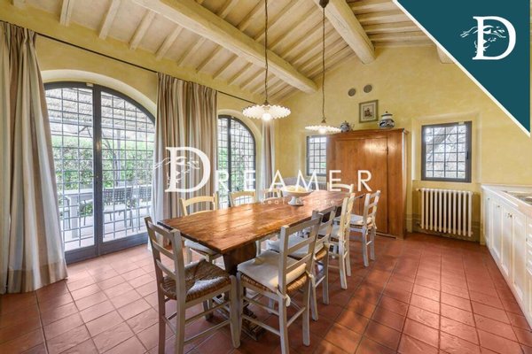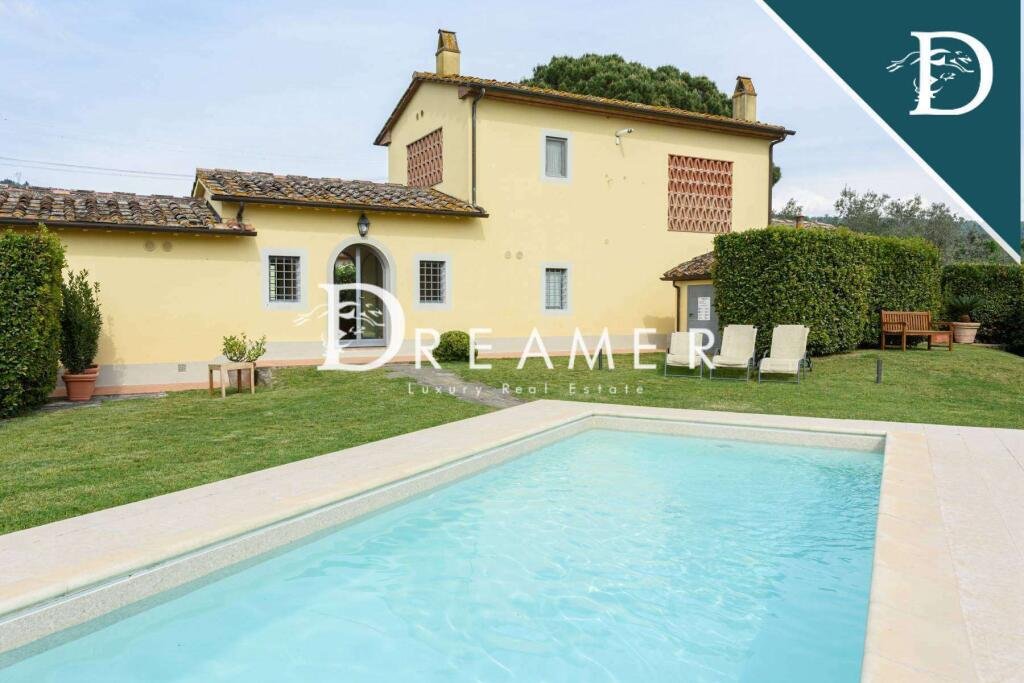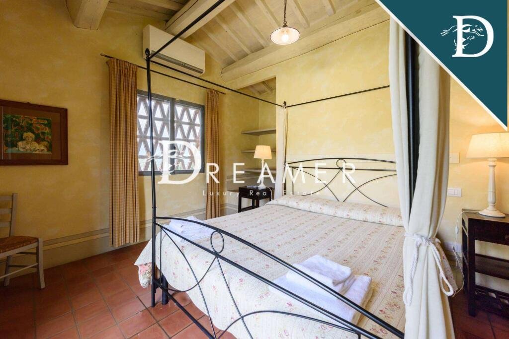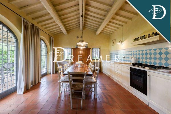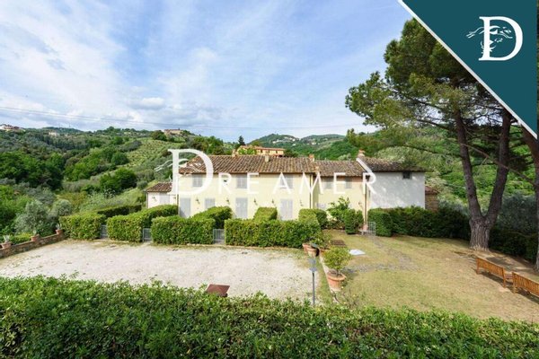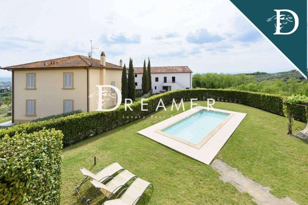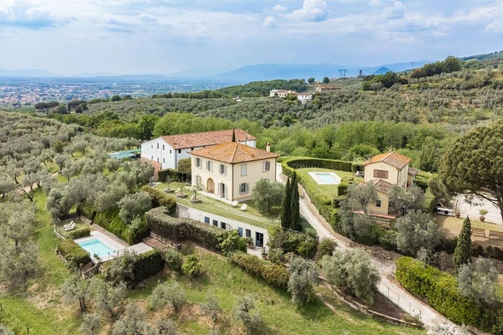 Enchanting Hamlet with Pools on the Tuscan Hills for sale. Consisting of 3 villas with gardens and 3 swimming pools. The property has a total surface area of approximately 850 sqm, plus approximately 900 sqm of building space. It's immersed in the green Tuscan hills, in a strategic area less than an hour from Florence, Lucca, and Pisa.