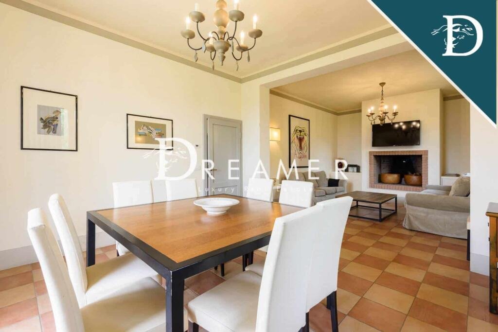 Villa of about 230 square meters consisting of a professional kitchen, a dining room, and a living room with a large fireplace. The kitchen leads through French windows to an external pergola, ideal for outdoor meals. The bedrooms are arranged on the second floor, each with a panoramic view of the surrounding areas. From the private garden, a path leads to the villa's private swimming pool, immersed in a splendid setting. The area around the pool includes a bathroom with a dressing room and a covered relaxation area.