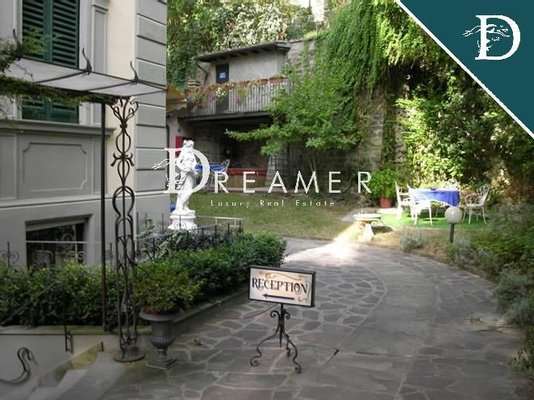 Historic 19th century villa with lift and garden for sale in Florence, near Piazzale Michelangelo, just 10 minutes from the historic center of the city and a few minutes walk from the International School of Florence. The property is divided into 4 levels for a total of approximately 700 sqm, with 19 bedrooms and 19 bathrooms. The entrance of the property leads to the reception, which features a large hall with access to the common areas: two breakfast rooms, a kitchen, an office, a bar, a storage room and 2 bedrooms with direct access to the garden. The upper floors can be reached by stairs or lift and house the bedrooms, each with a private bathroom. The courtyard of the villa allows you to comfortably park at least 5 cars. In the rear part of the property there is an equipped terrace used as an area for breakfast and outdoor lunches. Finally, technical rooms and comfortable storage spaces are divided between the mezzanines on the mezzanine floors, independent annexes and underground spaces. The villa lends itself both to being renovated from the perspective of an accommodation facility and to becoming a personal home, reorganizing the internal spaces according to specific needs. REF. 10521