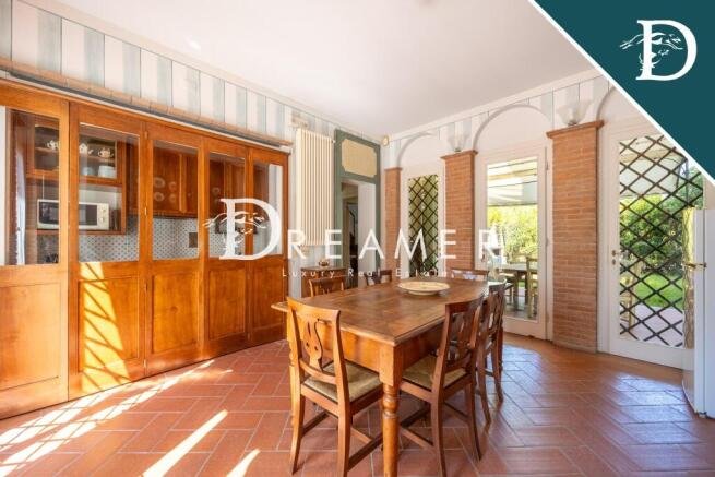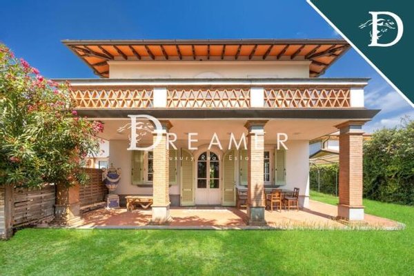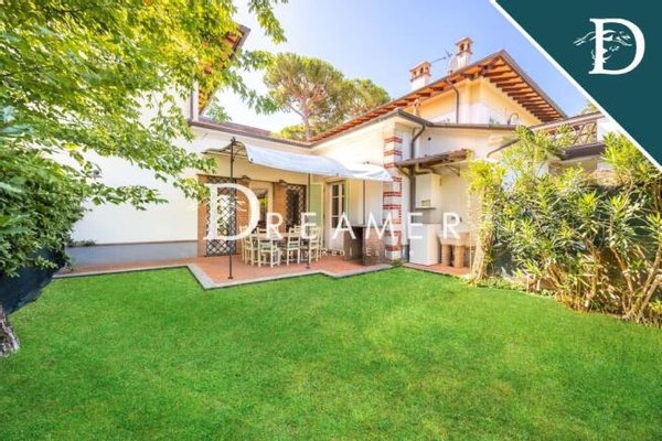 Semi-detached villa with a large private garden for sale just steps from the center of Forte dei Marmi, in a quiet and secluded residential area. The property, currently requiring renovation, comprises approximately 280 sqm of living space with 5