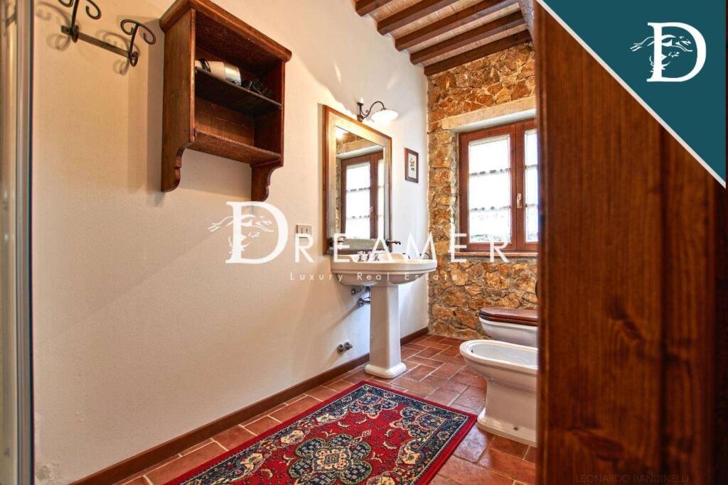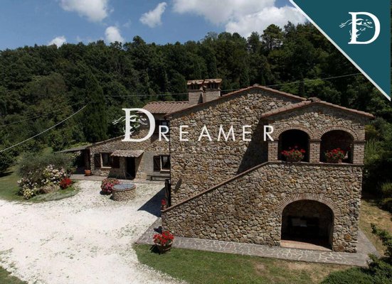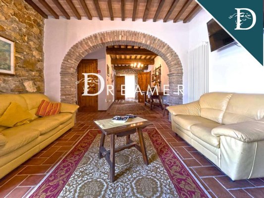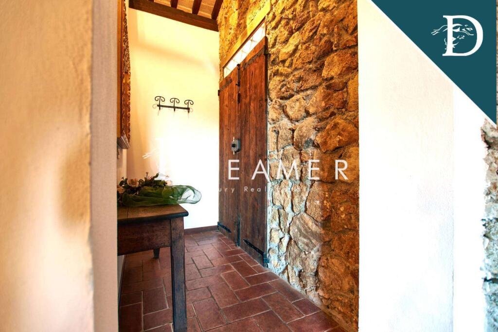 Das Erdgeschoss besteht aus einer typischen toskanischen Küche mit Holzofen, der durch einen charakteristischen Steinbogen mit dem Speisesaal verbunden ist. Dies führt zur überdachten Panoramaveranda. Auf dieser Etage gibt es außerdem das Wohnzimmer mit direktem Zugang zum Garten, 4 Schlafzimmer und 3 Badezimmer.