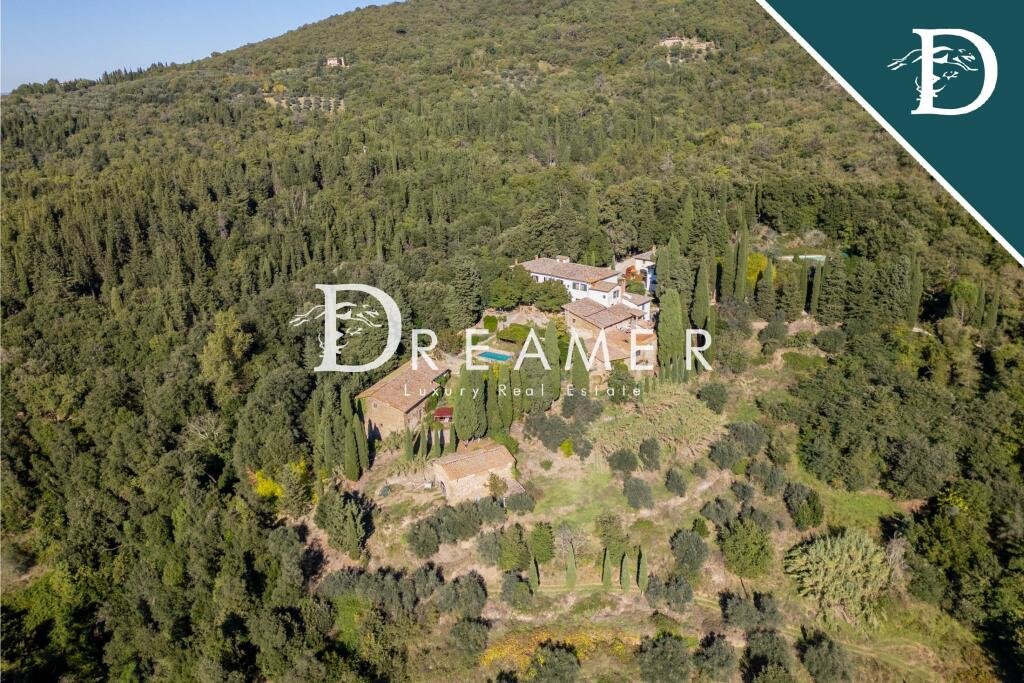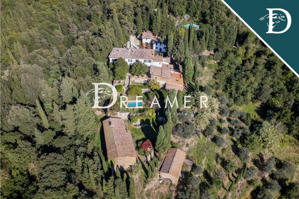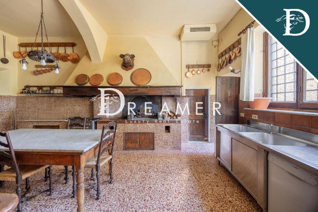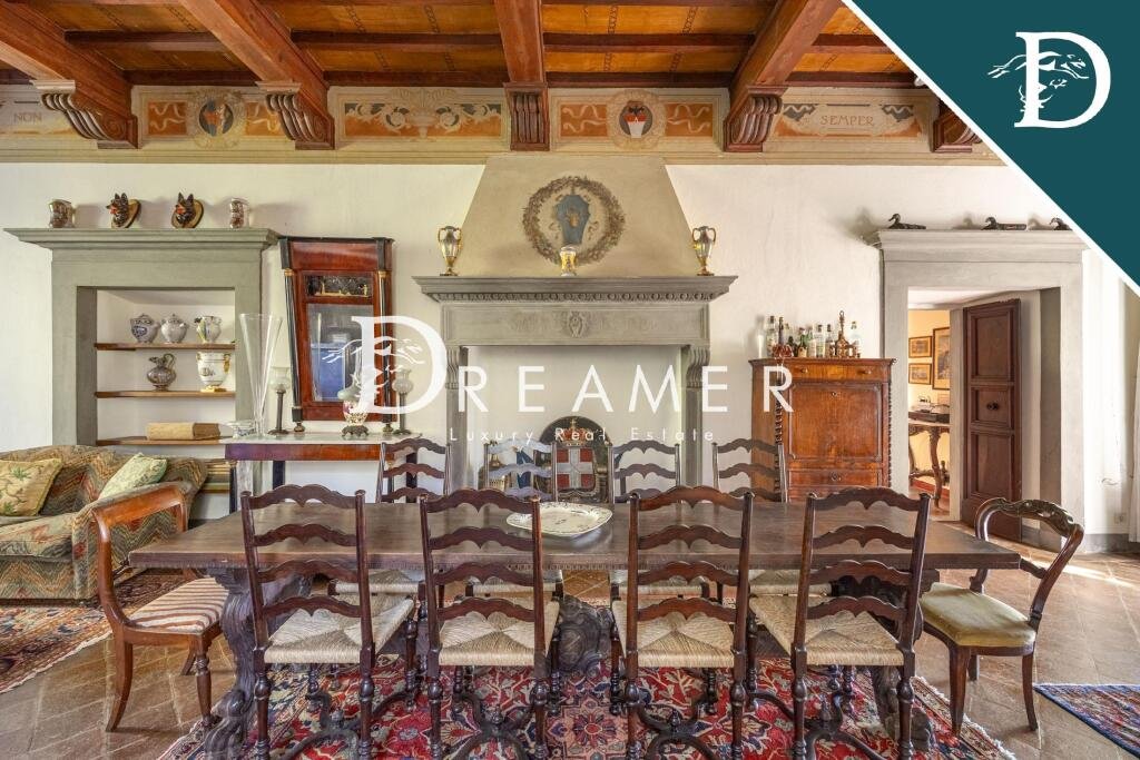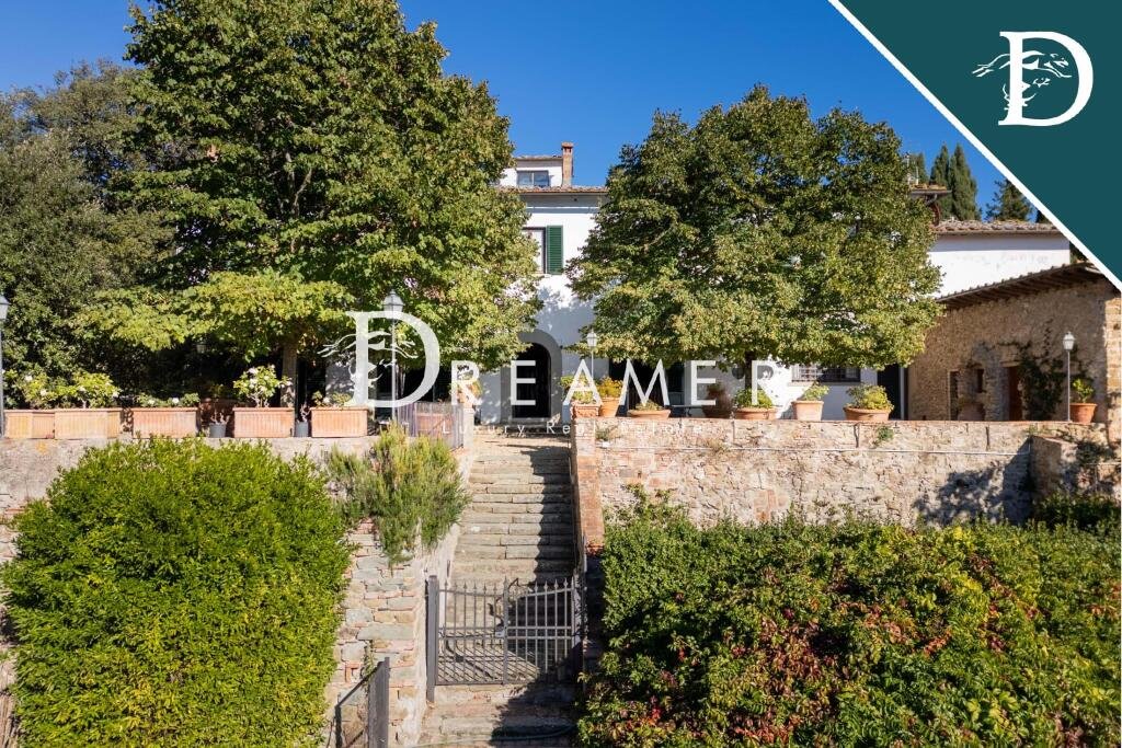Prestigious 16th-century property with a swimming pool for sale in the heart of Chianti, a short distance from the village of Greve in Chianti and about 20 minutes from Florence, boasting a wonderful panoramic view of the surrounding hills. The property, approximately 1,900 square meters divided between the main villa, two independent apartments, a large cellar, a separate farmhouse, and a barn, currently comprises 12 bedrooms and 9 bathrooms. It is surrounded by approximately 30 hectares of land, including 2.3 hectares of vineyards planted with Sangiovese, Merlot, and Petit Verdot, and 3 hectares of productive olive grove, as well as a beautiful garden with a swimming pool.
